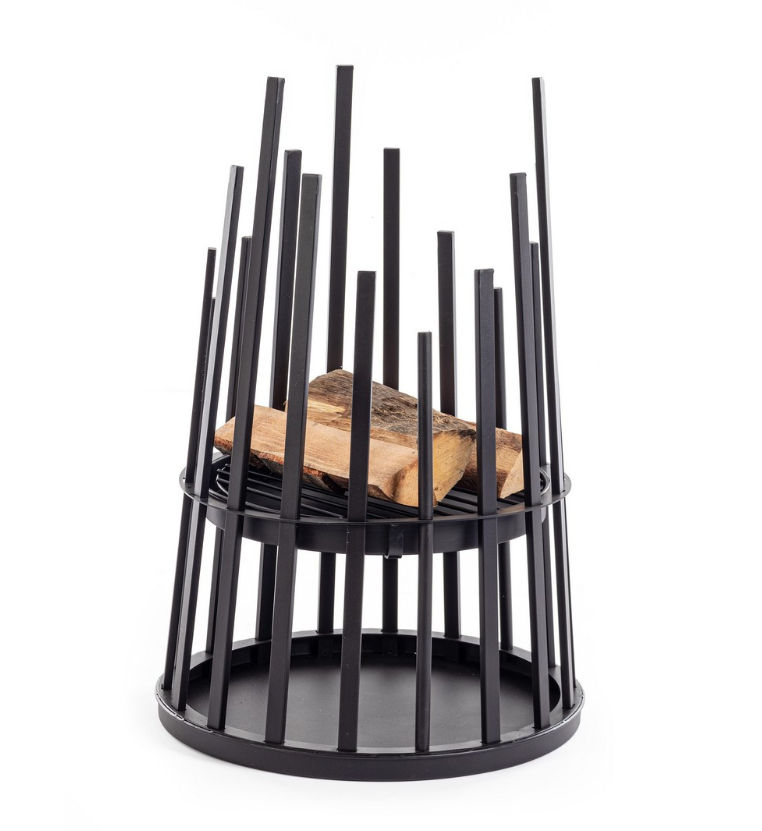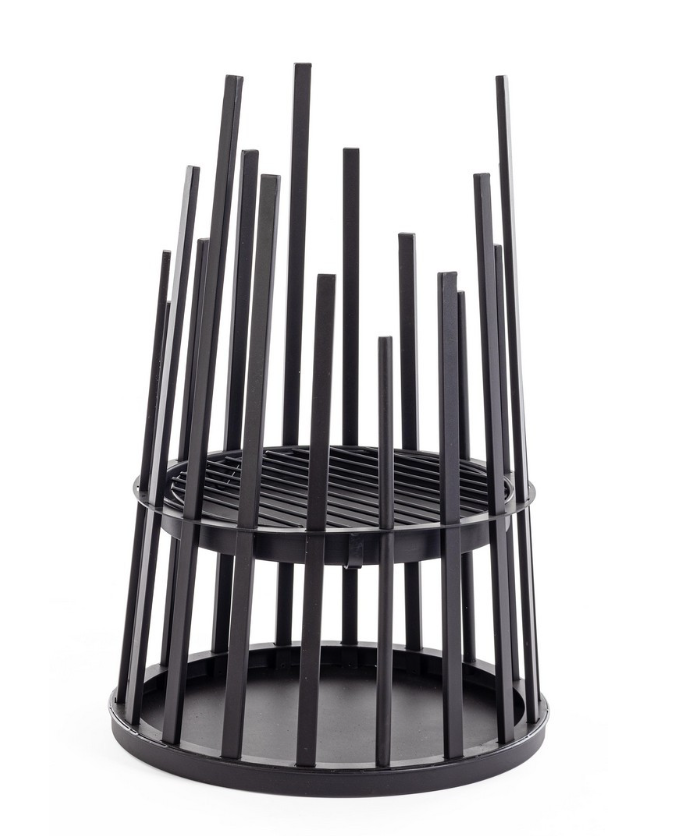 Wewnątrz ażurowej bryły znajduje się solidny ruszt, który zapewnia odpowiednią cyrkulację powietrza i ułatwia spalanie drewna. Pionowe listwy nie tylko pełnią funkcję dekoracyjną, ale również działają jako osłona, utrzymując polana wewnątrz paleniska. Alabama Black to idealna propozycja dla osób poszukujących nieszablonowych rozwiązań, które wprowadzą do strefy relaksu artystyczny sznyt i niezapomnianą atmosferę wieczornych spotkań.