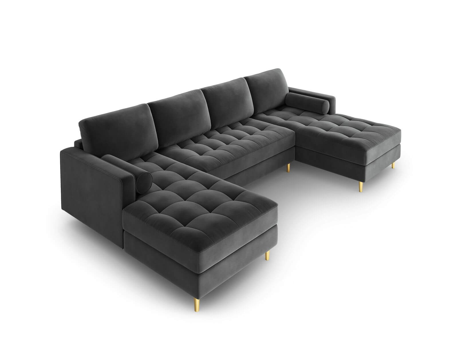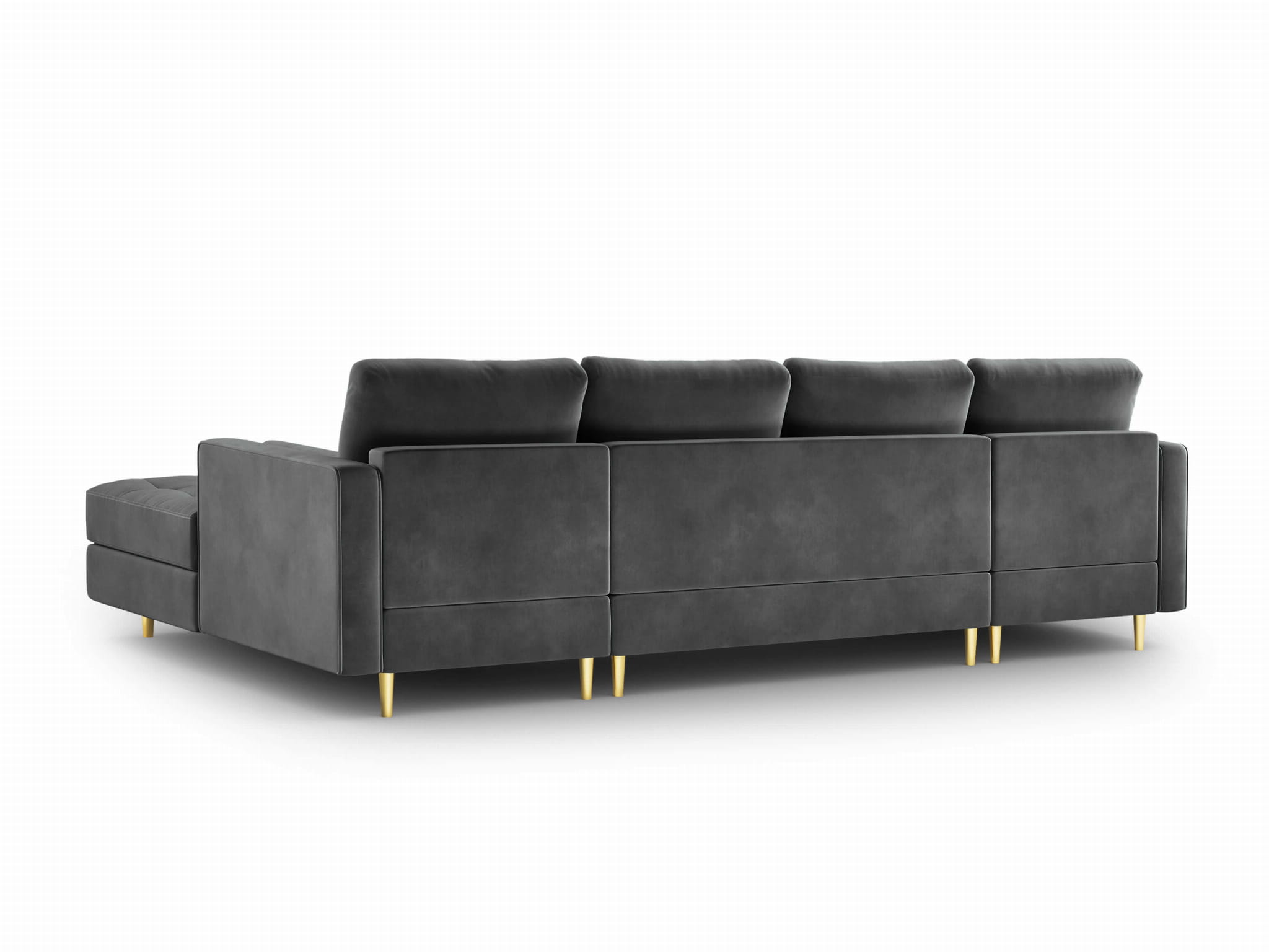 Panoramiczna sofa Santo aksamit ciemno szara na złotych nóżkach