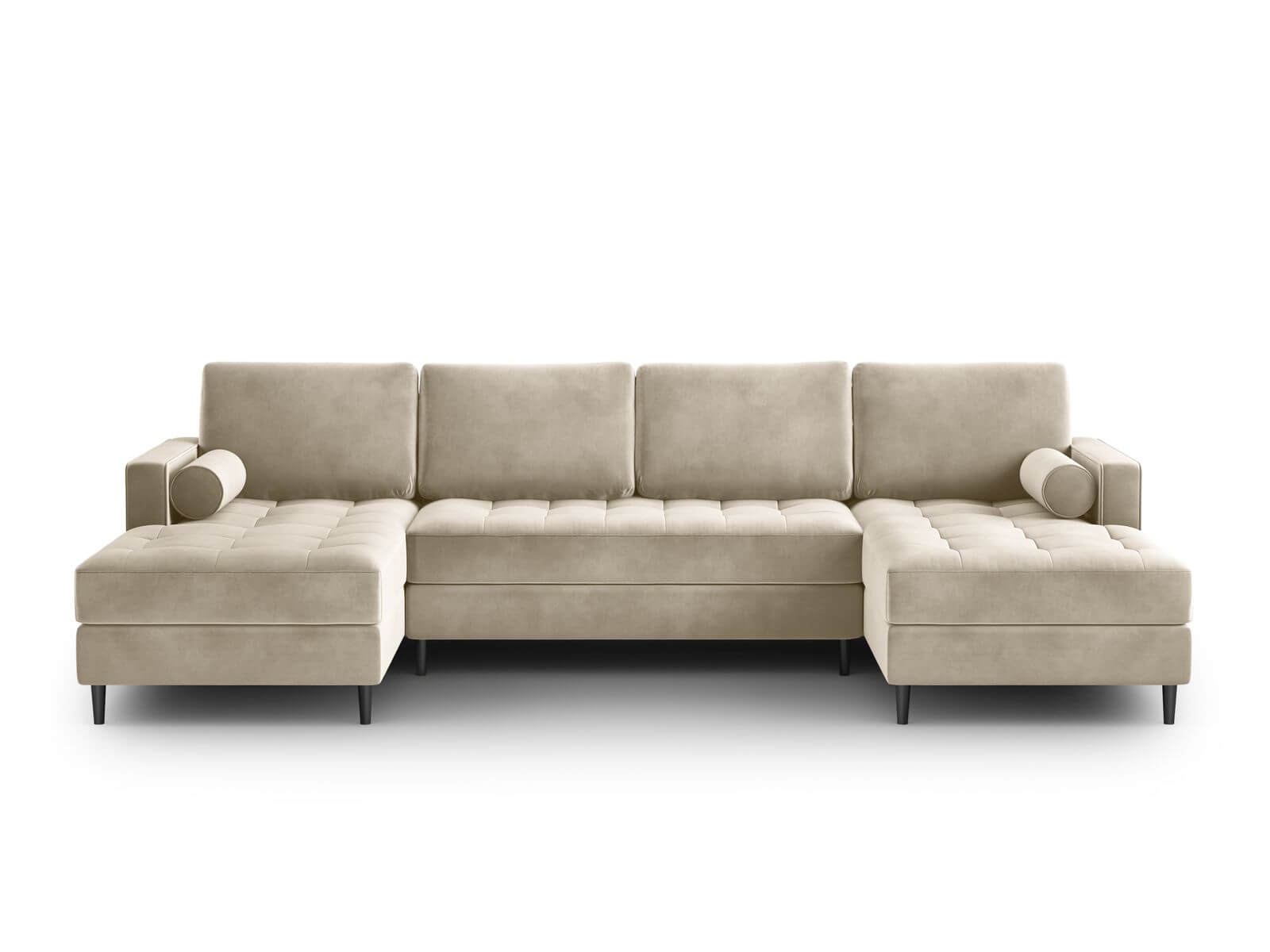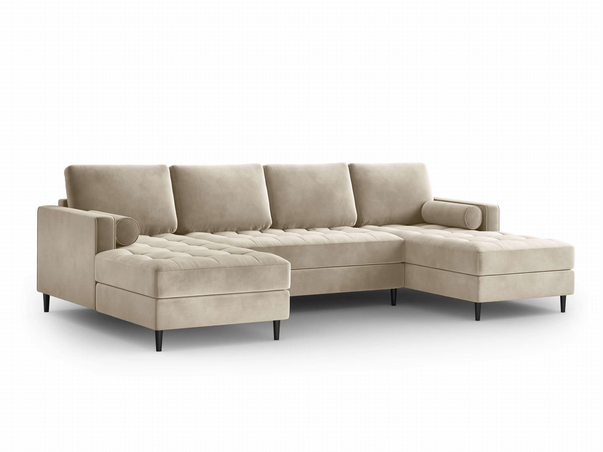 Panoramiczna sofa pikowana Santo aksamit beżowa nóżki czarne