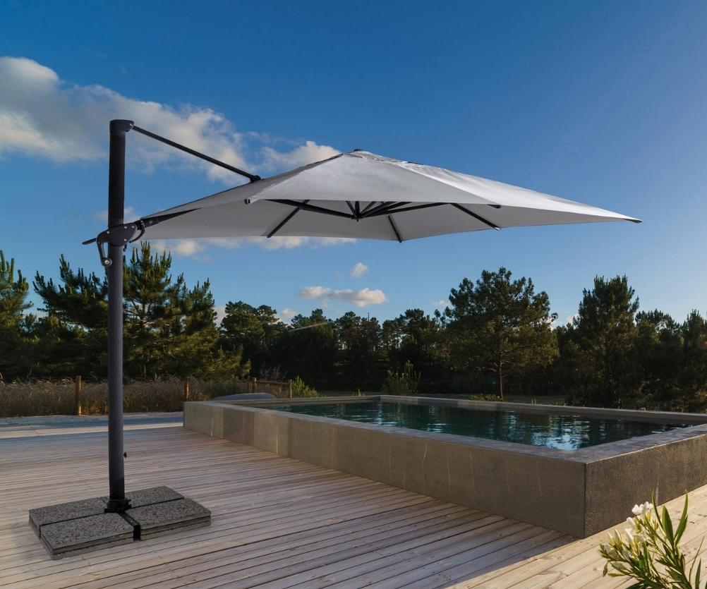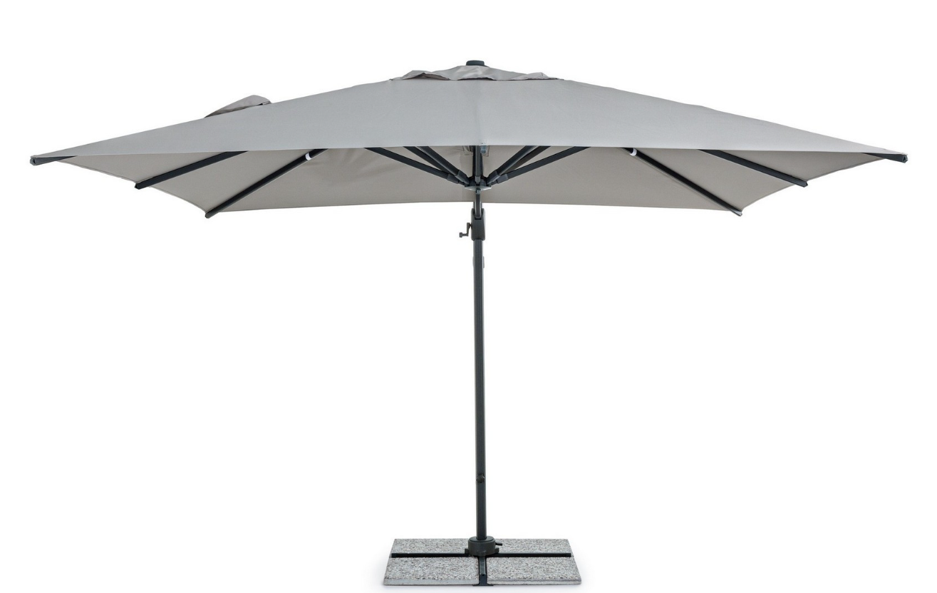 Parasol służy do ochrony przed słońcem. Aby zapobiec uszkodzeniom, należy bezwzględnie składać czaszę podczas opadów deszczu oraz wiatru. Nieużywany parasol powinien być zawsze zabezpieczony dołączonym do zestawu pokrowcem, co chroni jasną tkaninę przed zabrudzeniami i promieniowaniem UV.