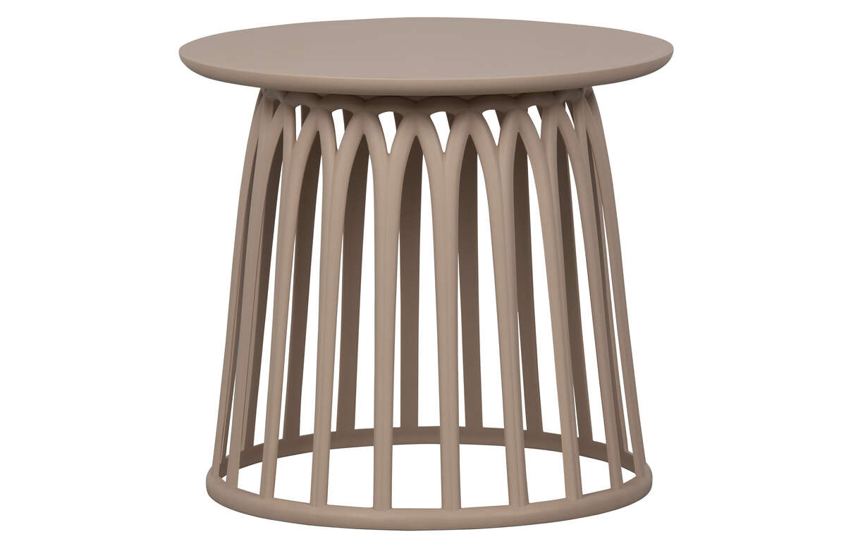 Połączenie odcienia nude z ażurową konstrukcją o opływowym kształcie tworzy gustowne zestawienie, które nie przytłoczy wnętrza, a nada mu unikalnego charakteru. Podstawa w kształcie odwróconego kielicha może służyć jako miejsce do przechowywania. Można również przepleść przez nią ledowe lampki, które stworzą piękną dekorację świetlną na ogród, taras czy balkon.