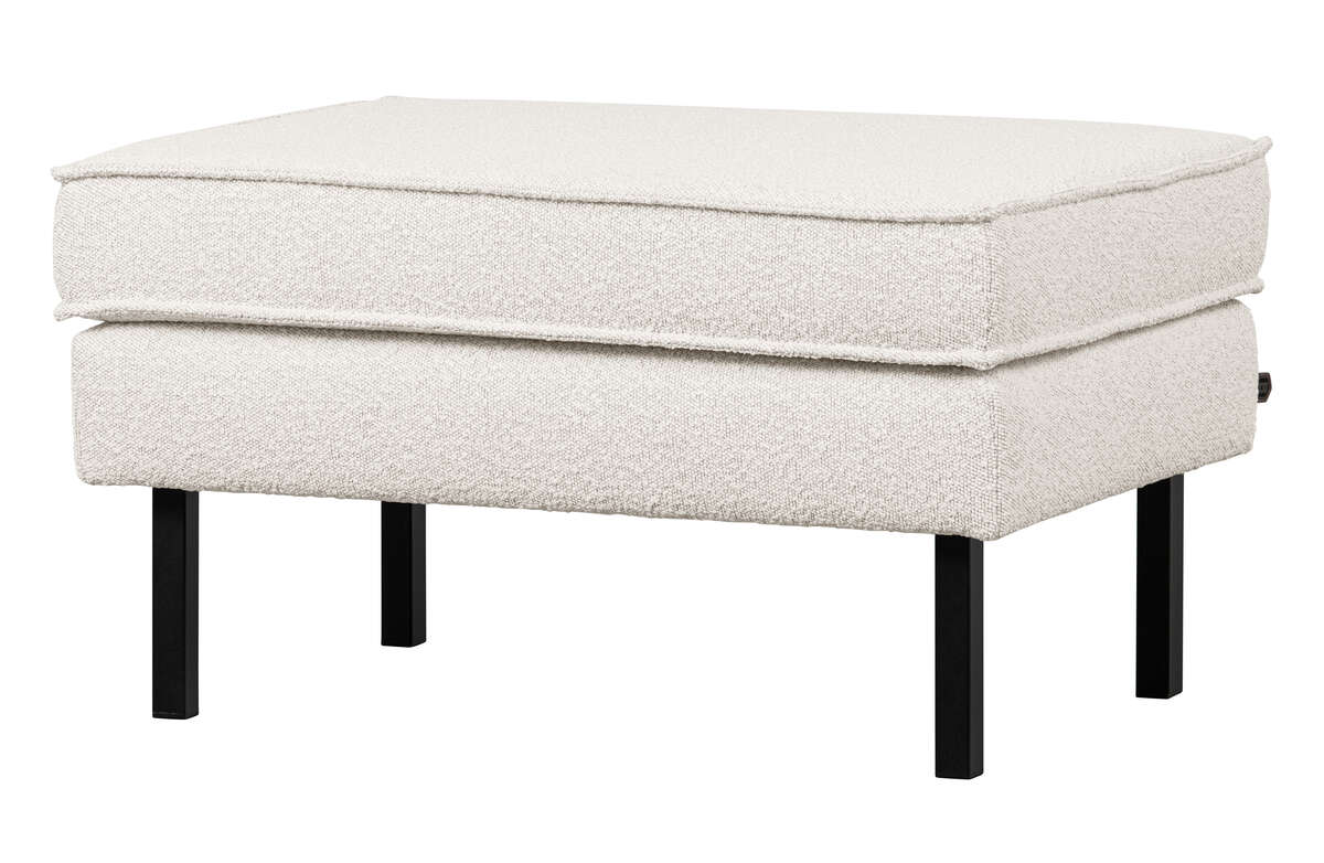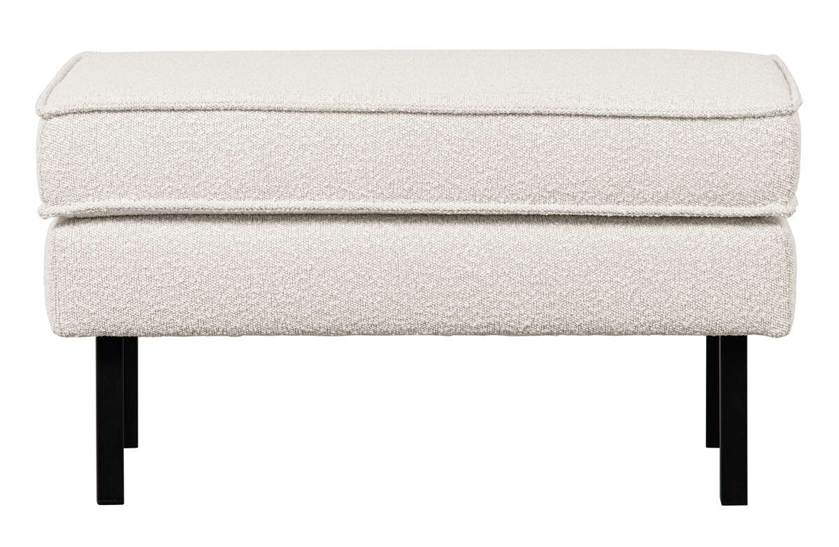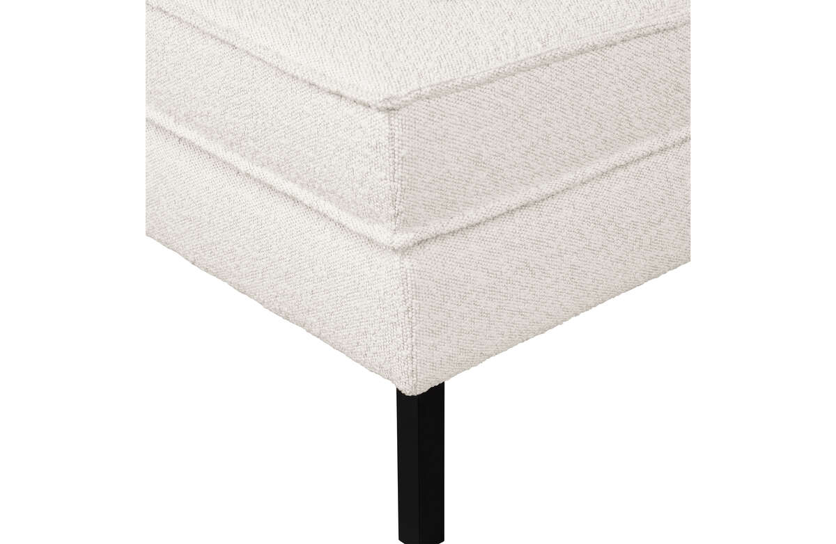 Filigranowe nóżki, które nadają podnóżkowi lekkości i subtelnego charakteru wykonane zostały z metalu, malowanego proszkowo na czarno. W zestawieniu z jasną tkaniną boucle, stanowią kontrastujące przełamanie kolorystyczne i tworzą wyraźny akcent całości.