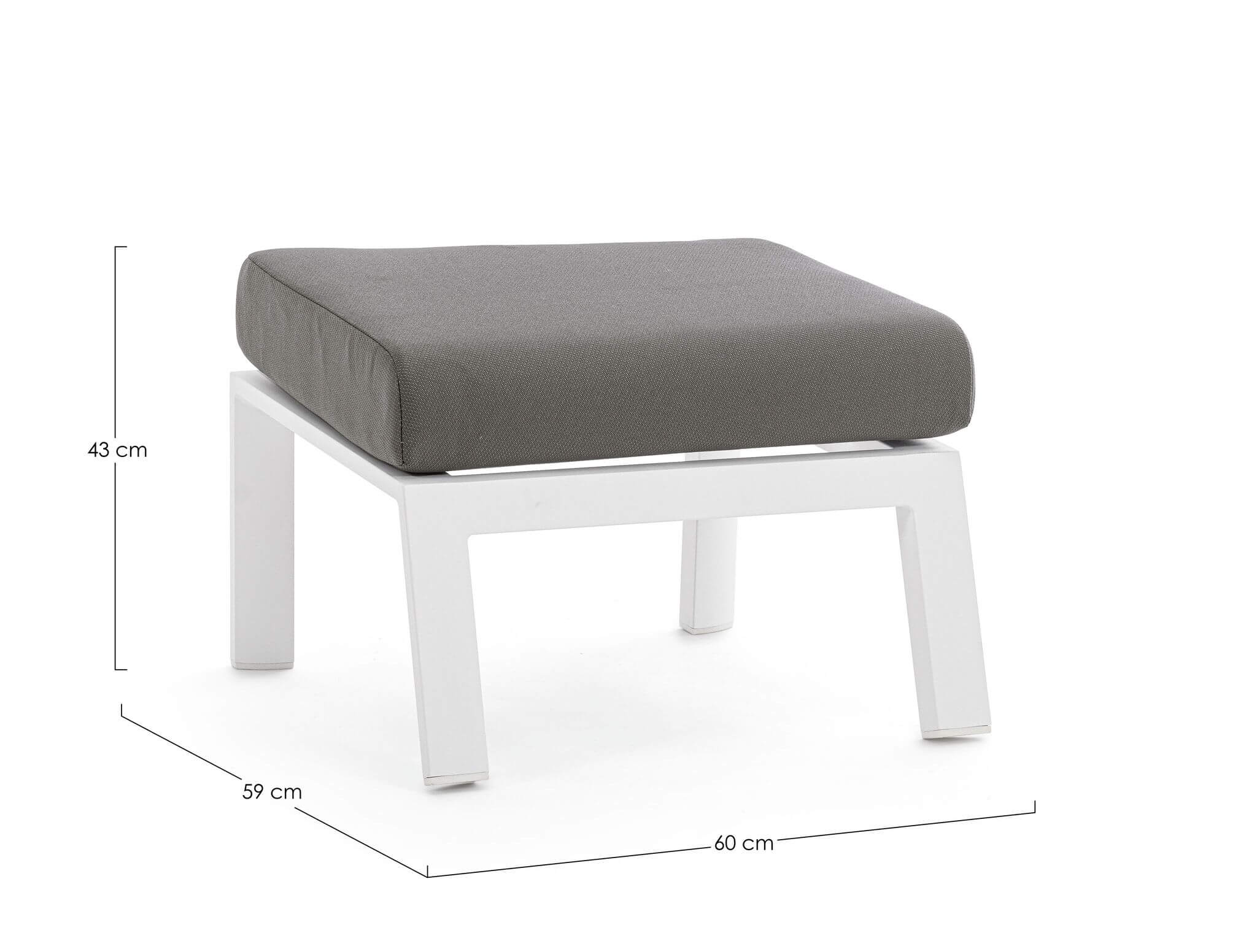 Szary podnóżek Kledi to funkcjonalne dopełnienie do fotela ogrodowego. Projektu włoskiej marki Bizzotto.