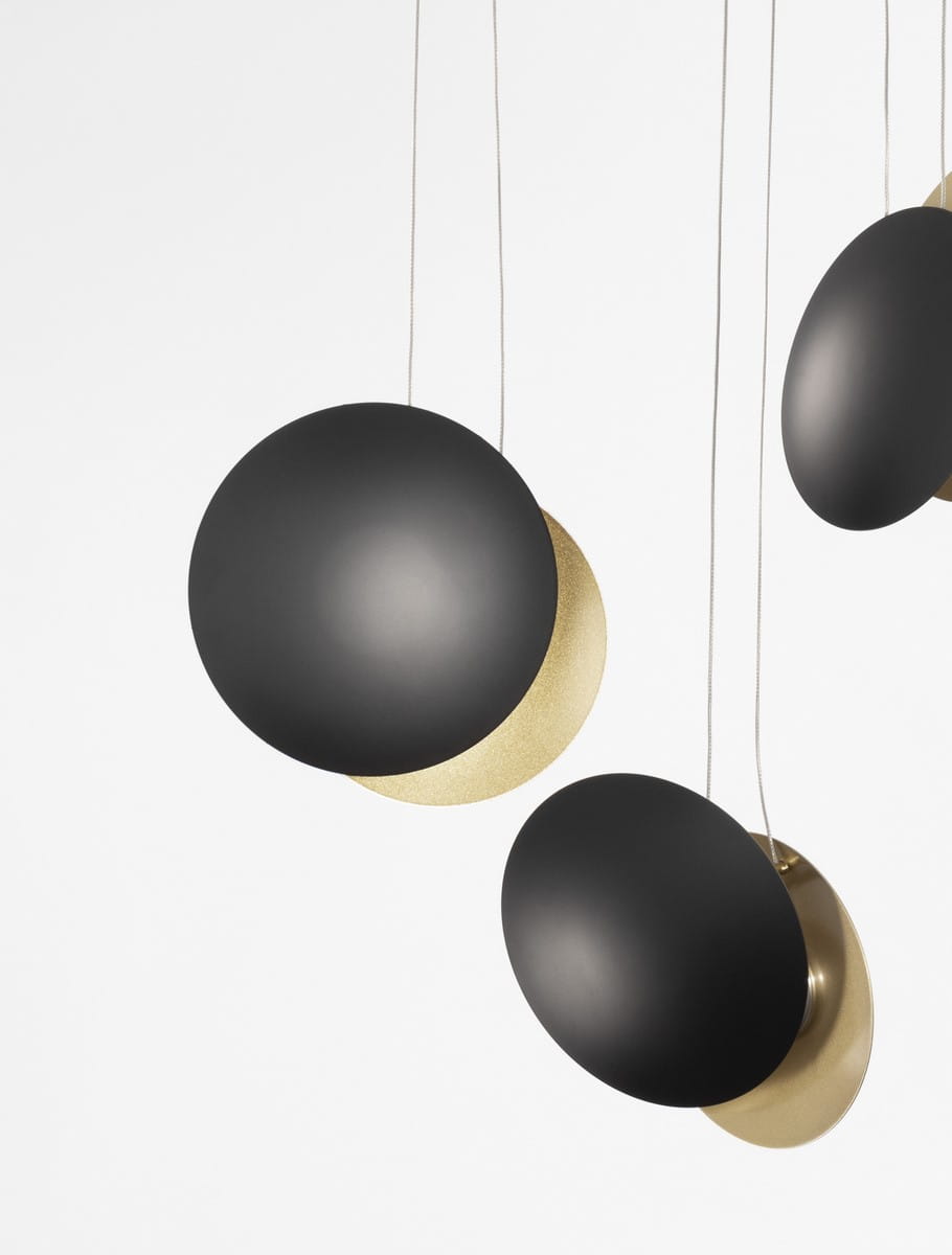 Praktycznym rozwiązaniem jest możliwość przesuwania czarnej blaszki względem złotej, dzięki czemu możesz swobodnie bawić się formą i modyfikować wygląd lampy.