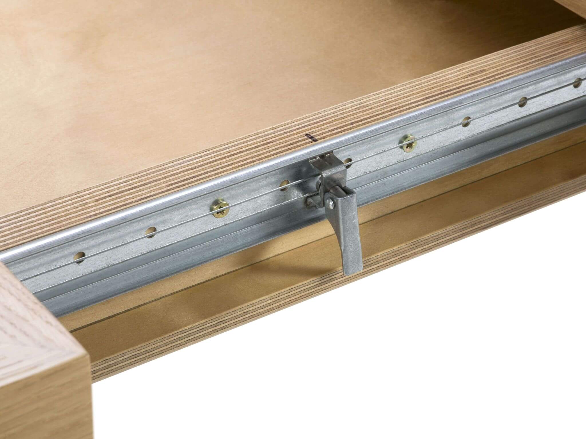 Wysokiej jakości prowadnice zapewniają płynne rozkładanie, a praktyczne wkładki przechowywane pod blatem pozwalają na wydłużenie stołu do 300 cm.