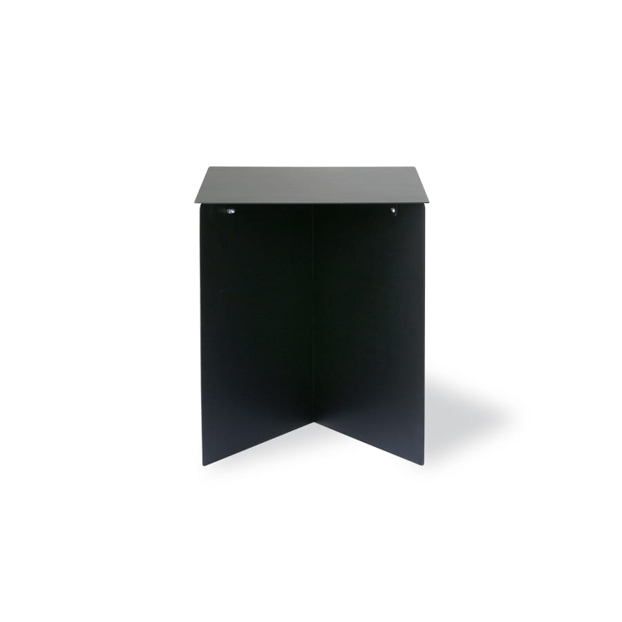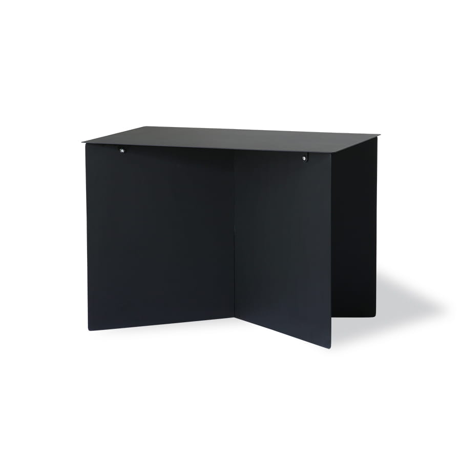 Wykonany starannie z metalu i wykończony w czarnym kolorze. Prostokątny blat i postawa złożona z prostych, trzech prostokątnych blach. Prosta, lecz urzekająca kompozycja. Czarny kolor będzie ciekawym akcentem w każdej aranżacji.