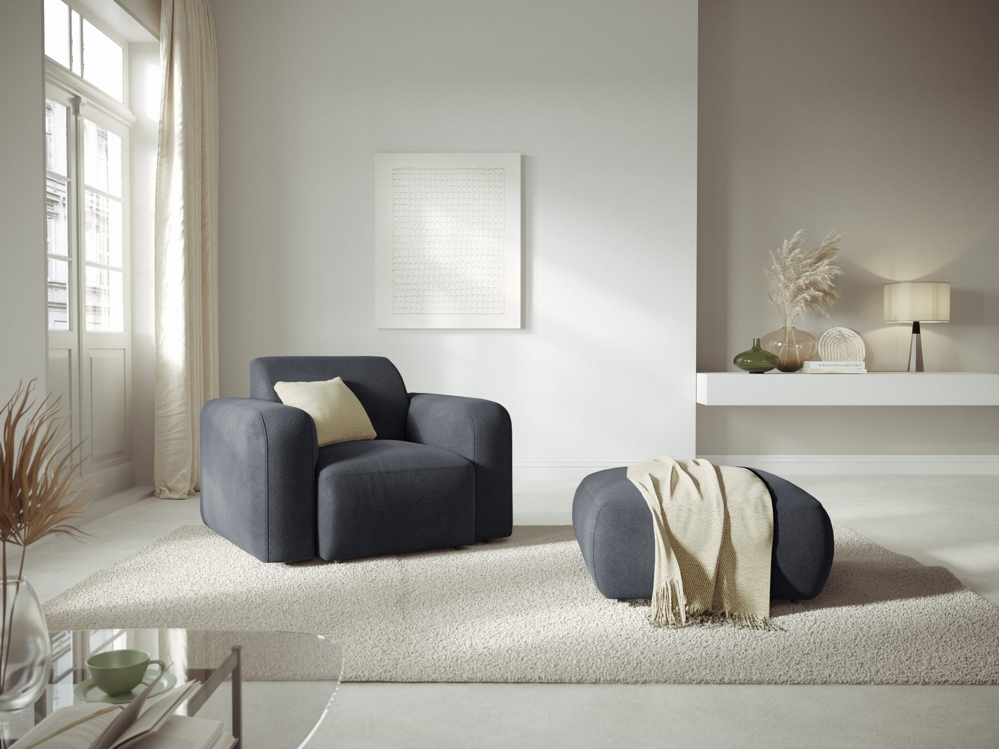 Lekko zaokrąglone boki wprowadzają do kubicznych kształtów nieco miękkości i subtelności. W serii znajdują się sofy narożne, proste i panoramiczne oraz fotel i puf, z których możesz skompletować pełne wyposażenie salonu. Niektóre modele mają półokrągłe siedziska albo otwartą formę. Ta różnorodność sprawia, że każdy znajdzie ciekawy model dla siebie.