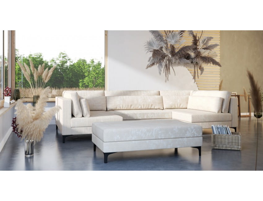 Beżowa, prostokątna pufa Charley - piękno minimalistycznego designu i maksymalnego komfortu. Sztruksowa pufa w beżu sprawdzi się jako stolik, dodatkowe siedzisko czy też podnóżek.