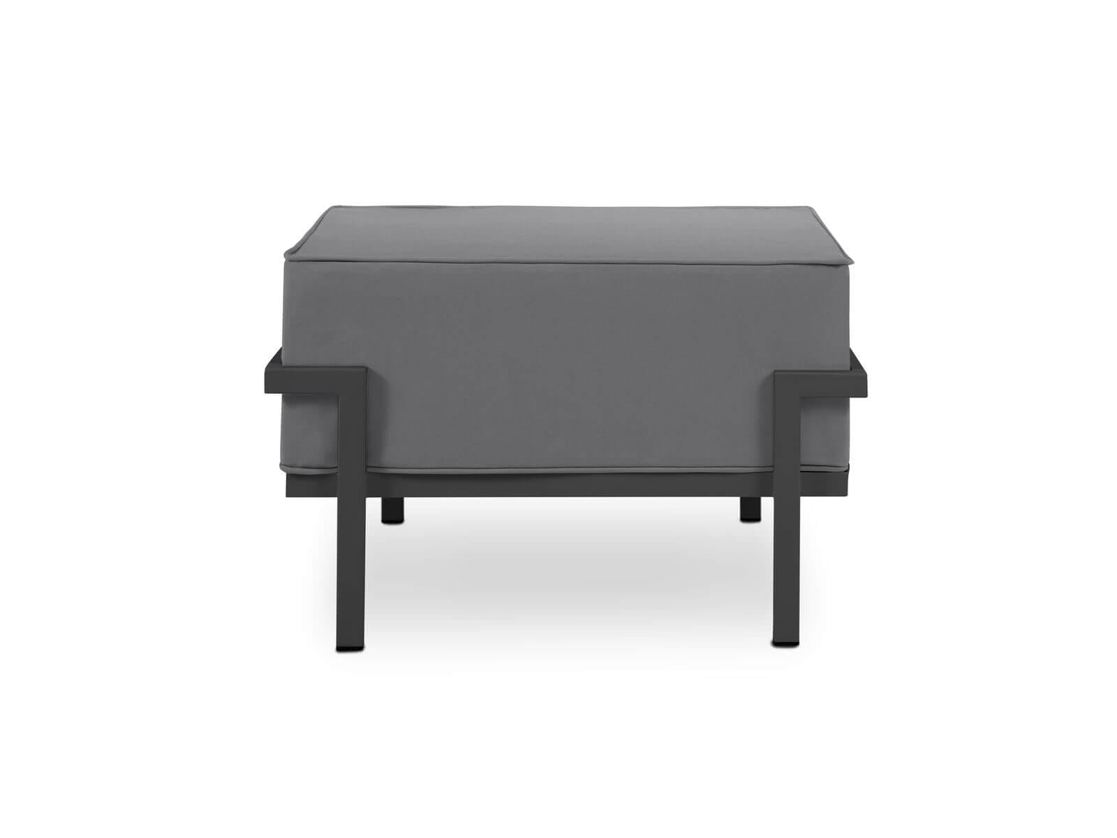 Antracytowa, prostokątna pufa ogrodowa, która posłuży jako dodatkowe siedzisko lub podnóżek, zwiększając komfort wypoczynku na świeżym powietrzu.