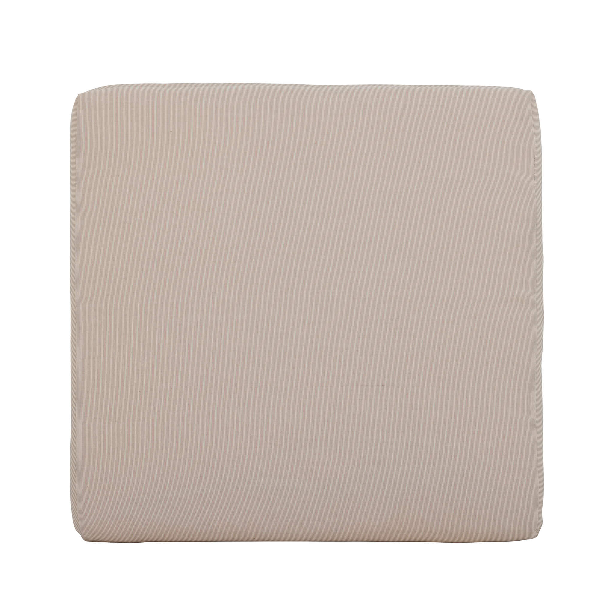 Naturalna, beżowa pufa wyposażona jest w poduszkę z poliestrowymi pokrowcami w ciepłych barwach.