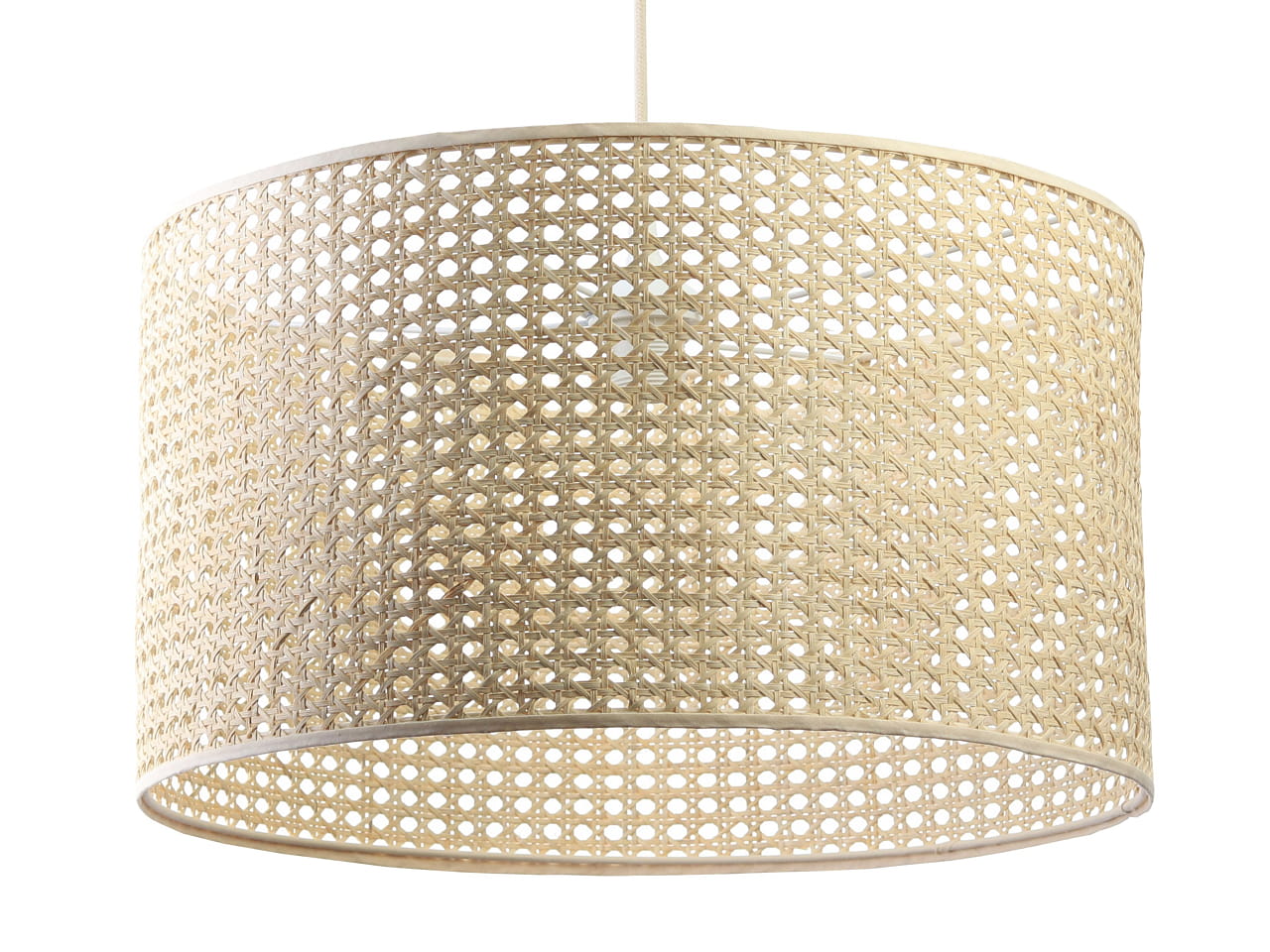 Lampa została stworzona z wysokiej jakości naturalnych włókien palmy rotangowej, dzięki czemu jest trwała i mocno inspirowana naturą. Całość utrzymuje biała, metalowa podsufitka, do której przymocowany został kremowy przewód o długości 80 cm. Lampa rattanowa prezentuje się niesamowicie zarówno przy zgaszonym, jak i zapalonym świetle.