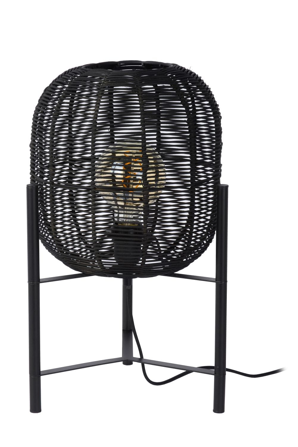 Rattanowa czarna lampa stołowa Hermine