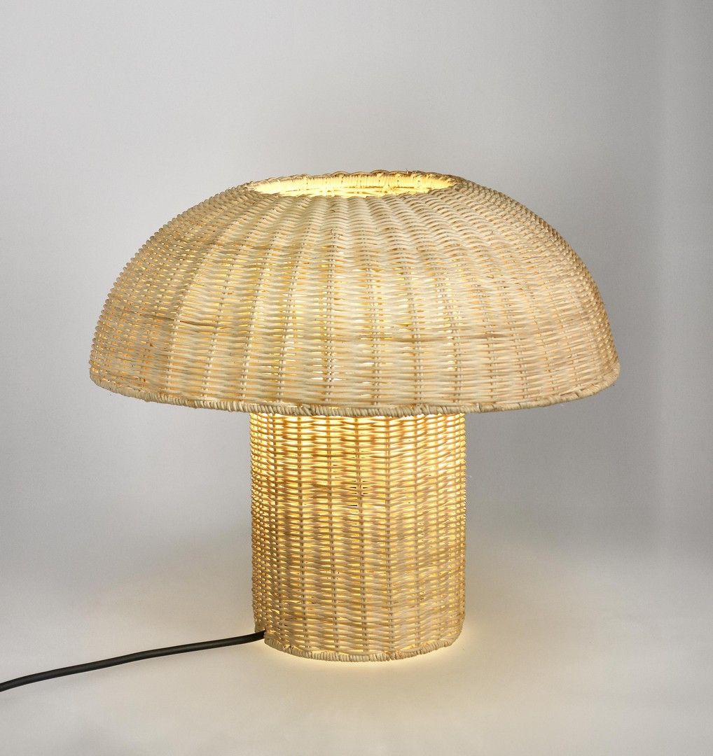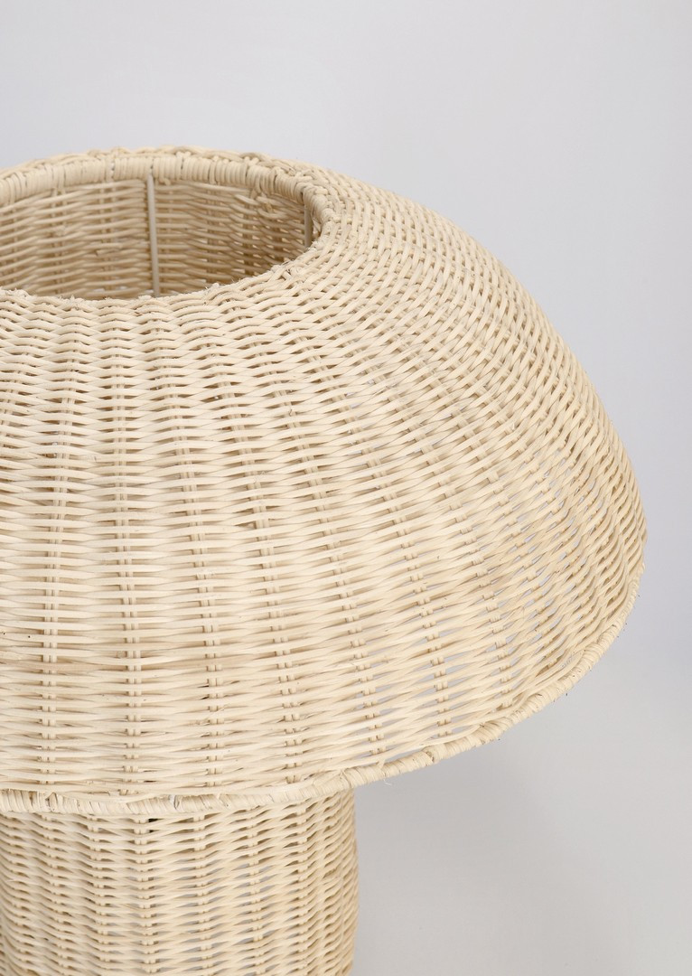 IRELE BEIGE to niezwykle stylowa lampka stołowa, która dzięki swojemu naturalnemu designowi wprowadza do wnętrza ciepło i przytulność. Jej kształt inspirowany klasyczną formą grzybka zachwyca prostotą, a ręcznie wyplatany klosz z rattanu pięknie rozprasza światło, tworząc nastrojową atmosferę.