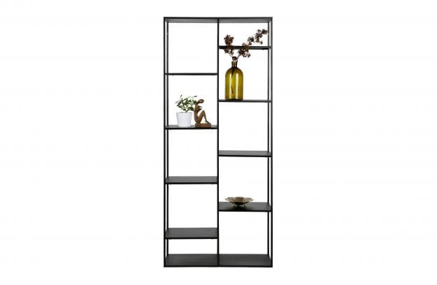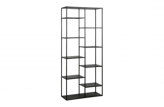 Regał JUNE od marki Woood to względnie prosty mebel wykonany z metalu w kolorze czarnym. Regał zyskuje charakter dzięki ciekawemu rozmieszczeniu półek. Regał jest bardzo funkcjonalny. JUNE sprawdzi się w wielu pomieszczeniach. Regał znajdzie miejsce we wnętrzach typu loft lub w bardziej klasycznych aranżacjach.