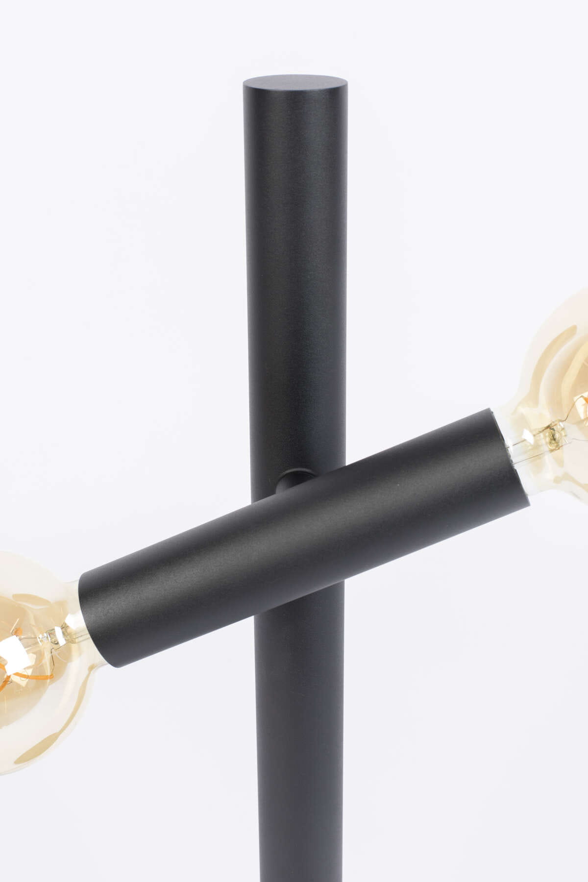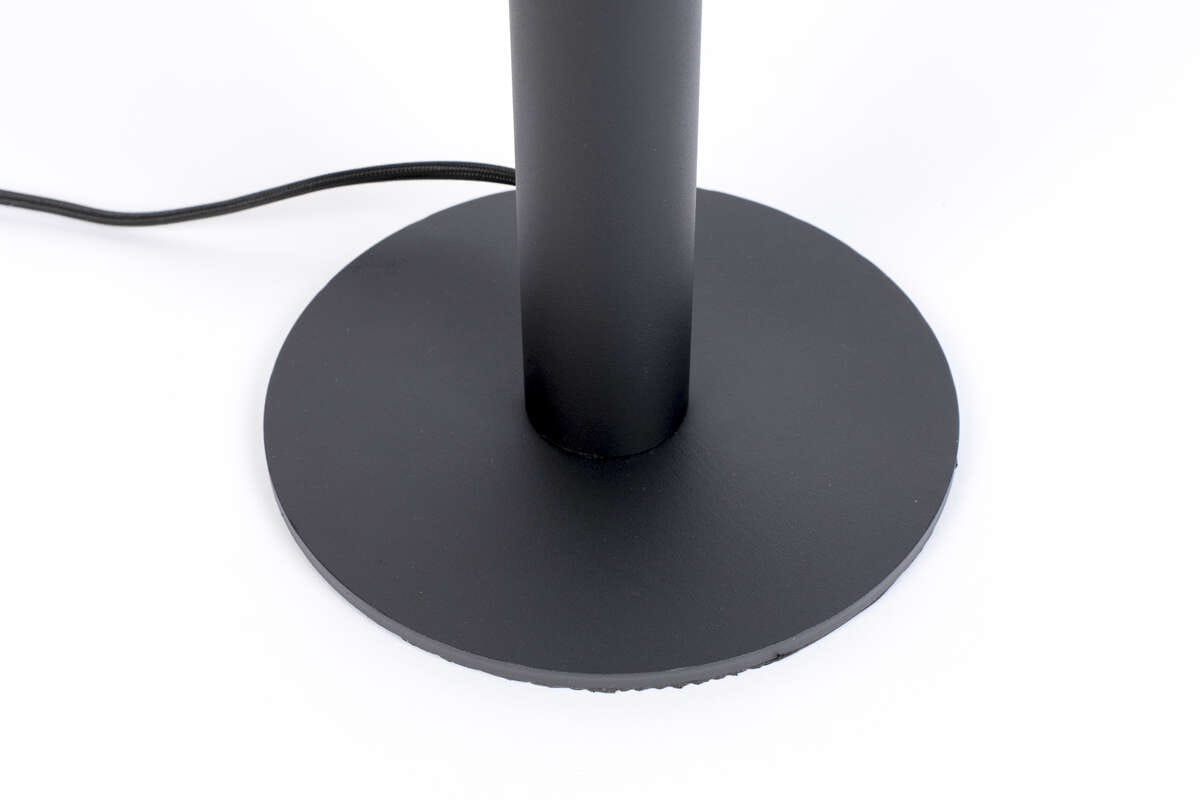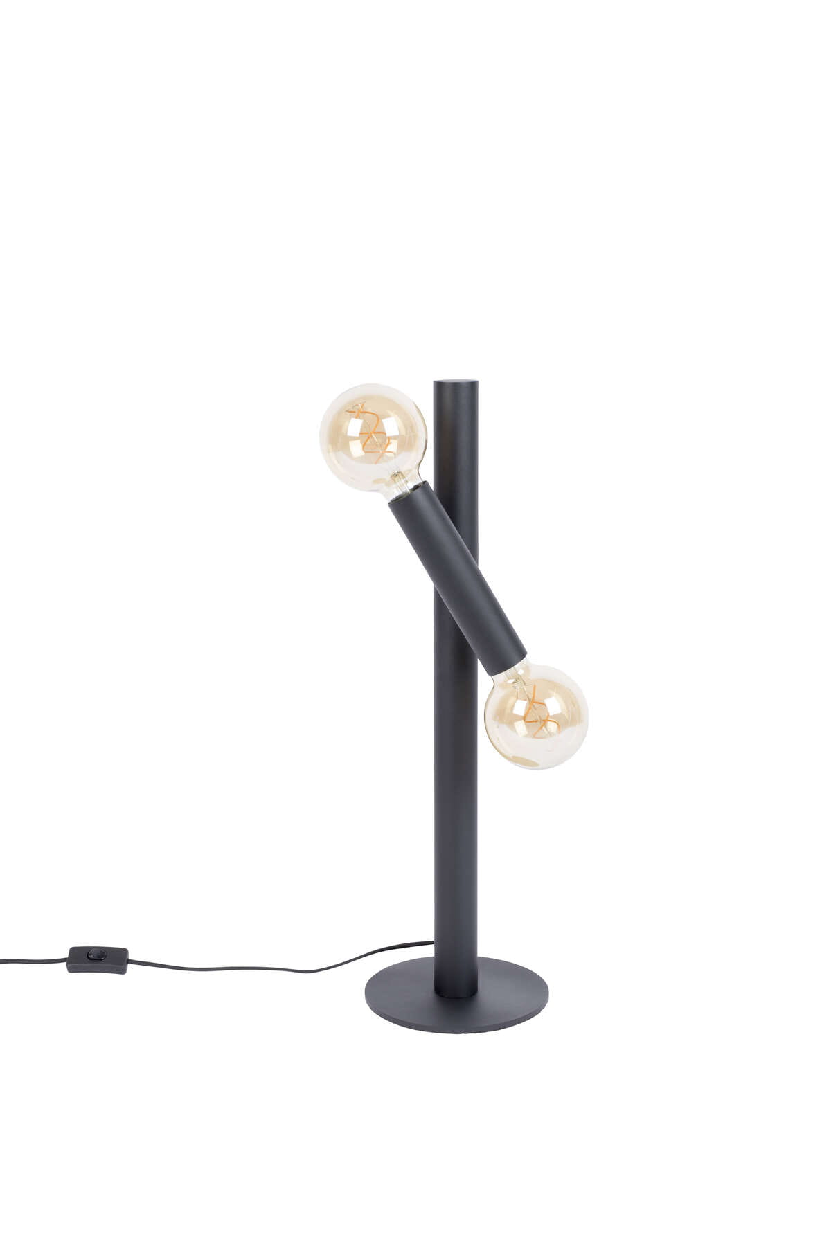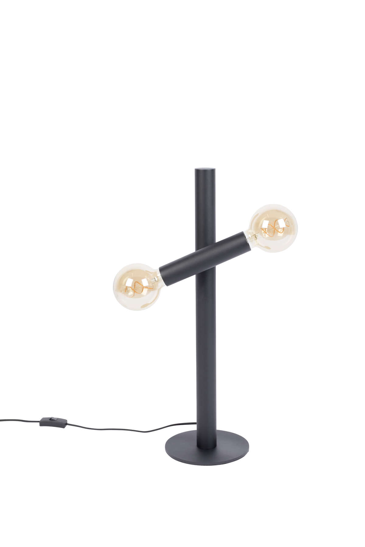 Na głównym korpusie osadzone jest krótsze ramię, zwieńczone z obu stron odkrytymi żarówkami. Zastosowanie dekoracyjnych żarówek typu Edison podkreśli design lampy i nada klimatu w stylu vintage. Niezwykle praktyczną funkcją jest regulowane ramię, które można dowolnie przesuwać, zmieniając jego kąt nachylenia. Lampa osadzona jest na okrągłej podstawie, z której wychodzi teksturowany kabel z włącznikiem światła.