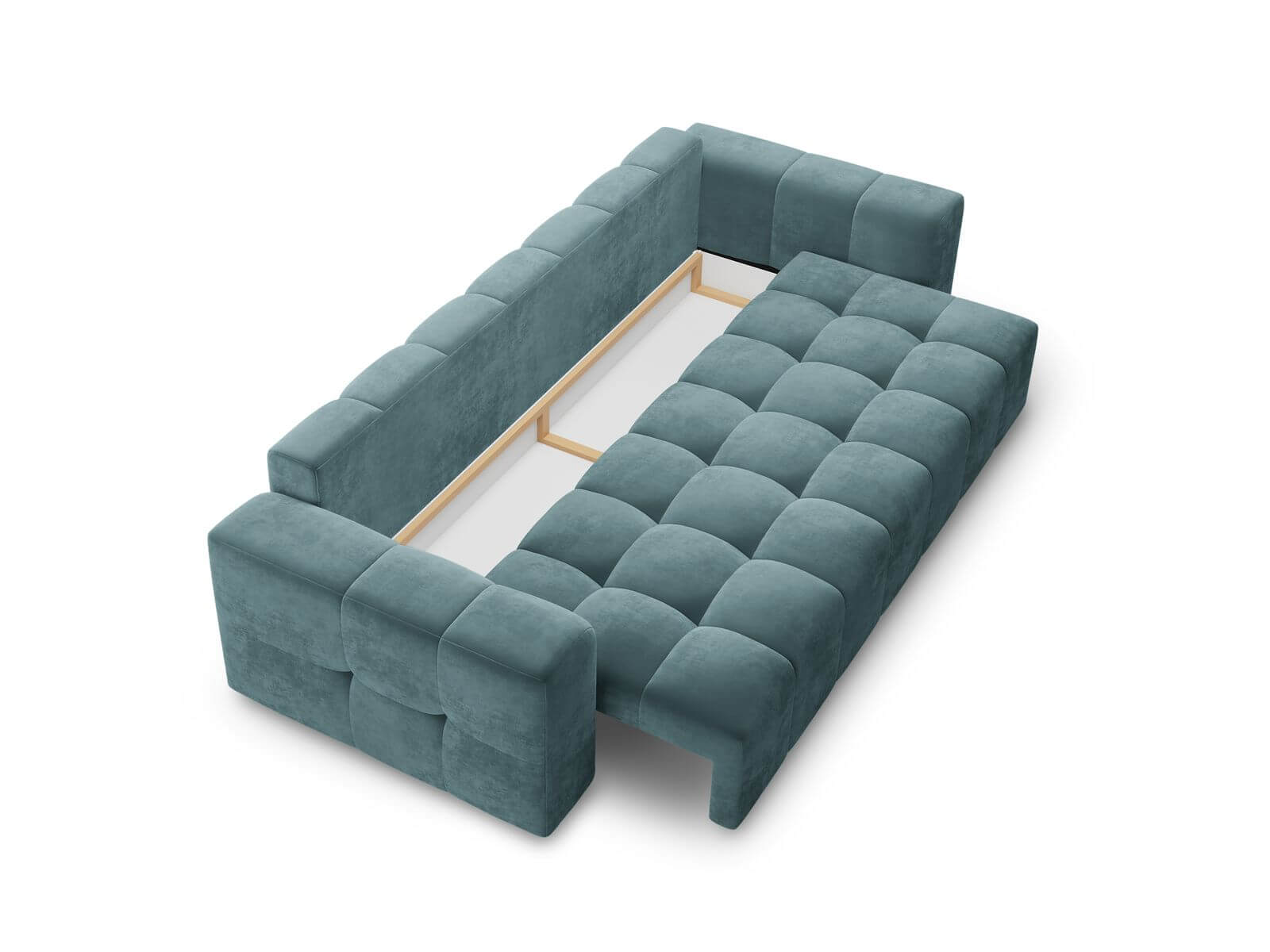 Rozkładana sofa 3-osobowa Luca pikowana niebieski aksamit