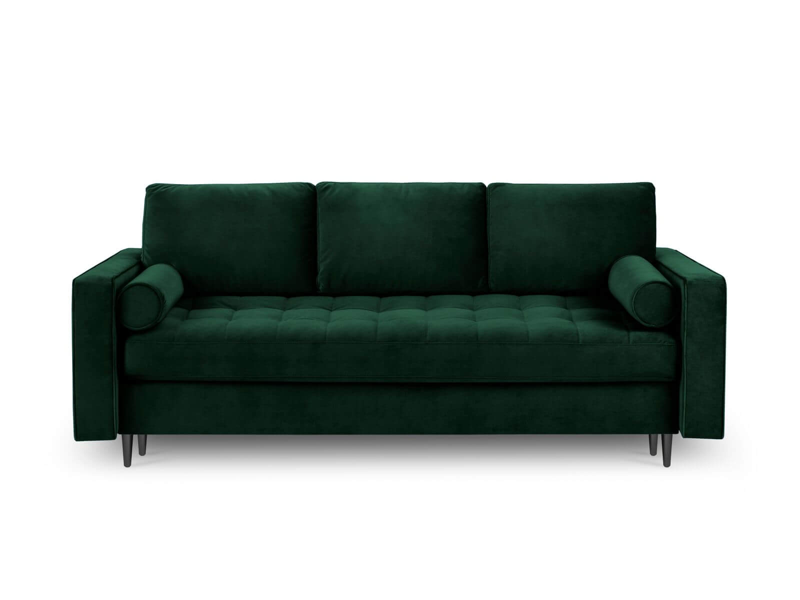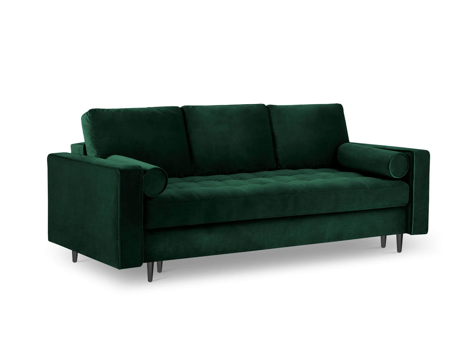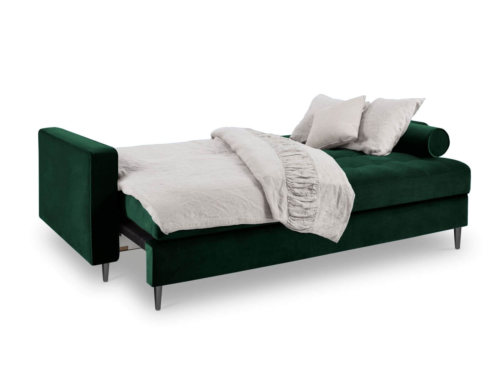 Rozkładana sofa 3 osobowa Santo aksamit butelkowa zieleń nóżki czarne