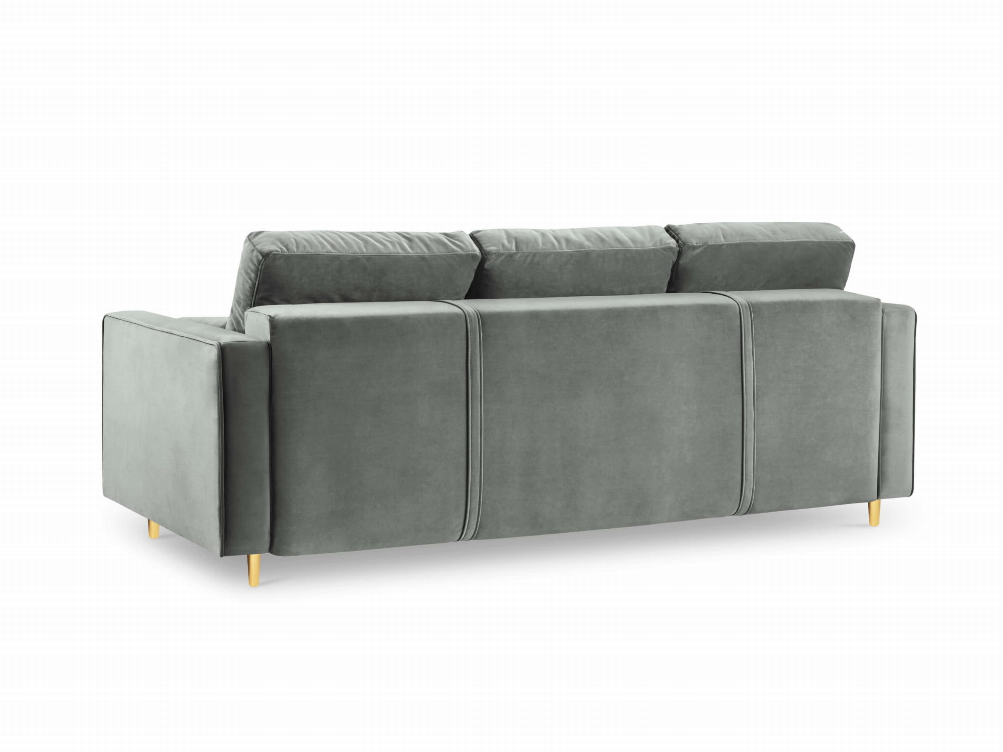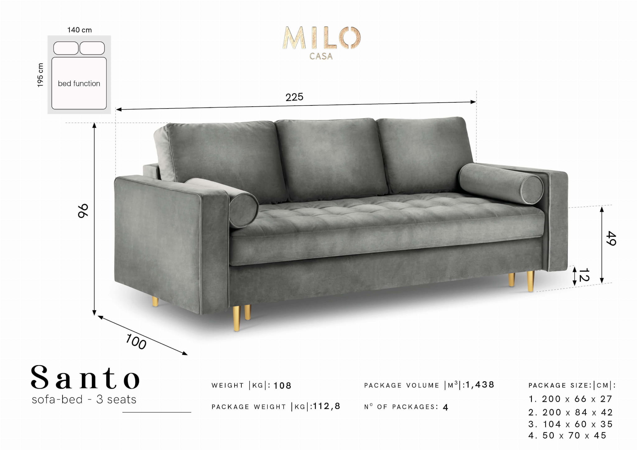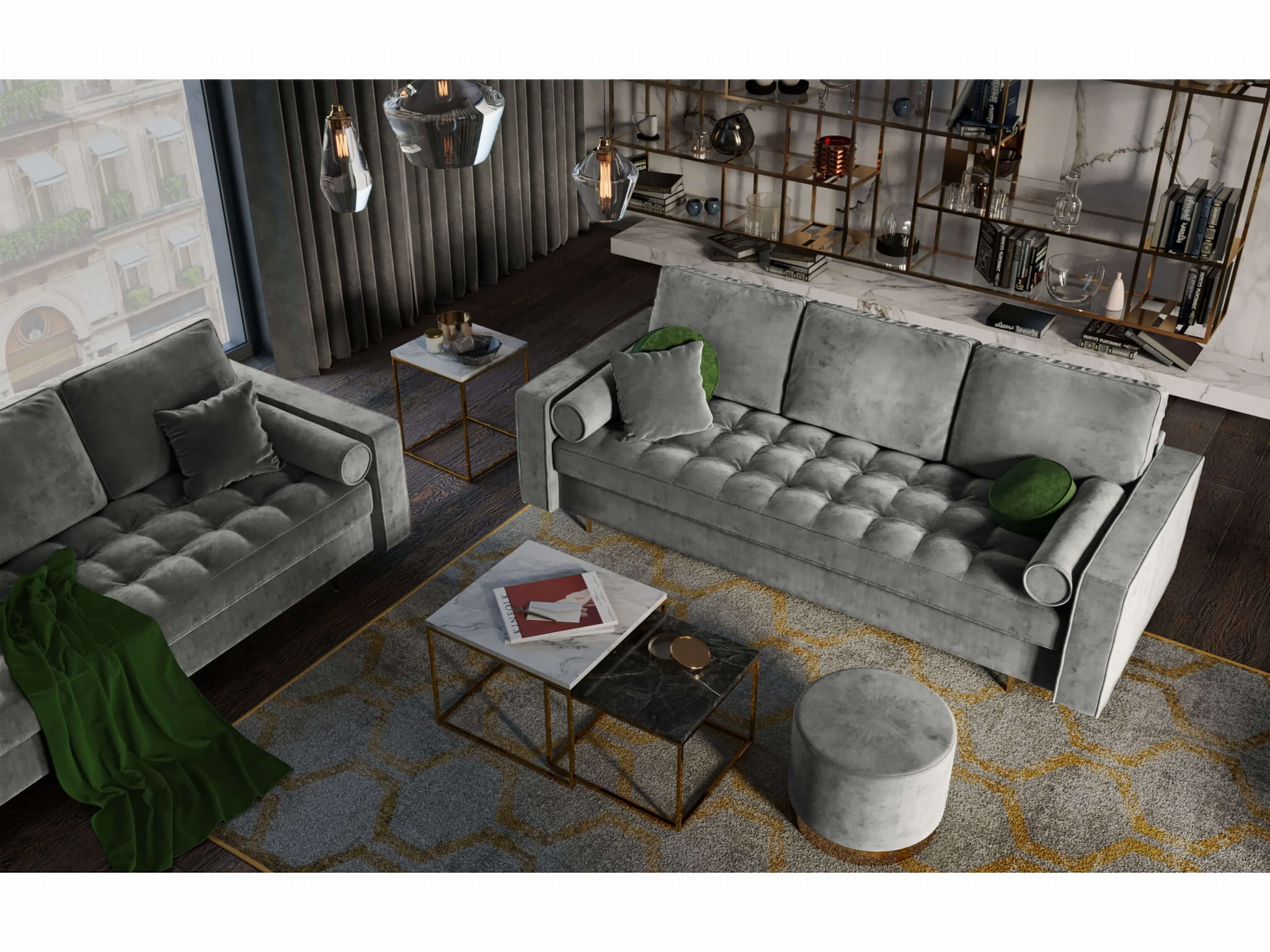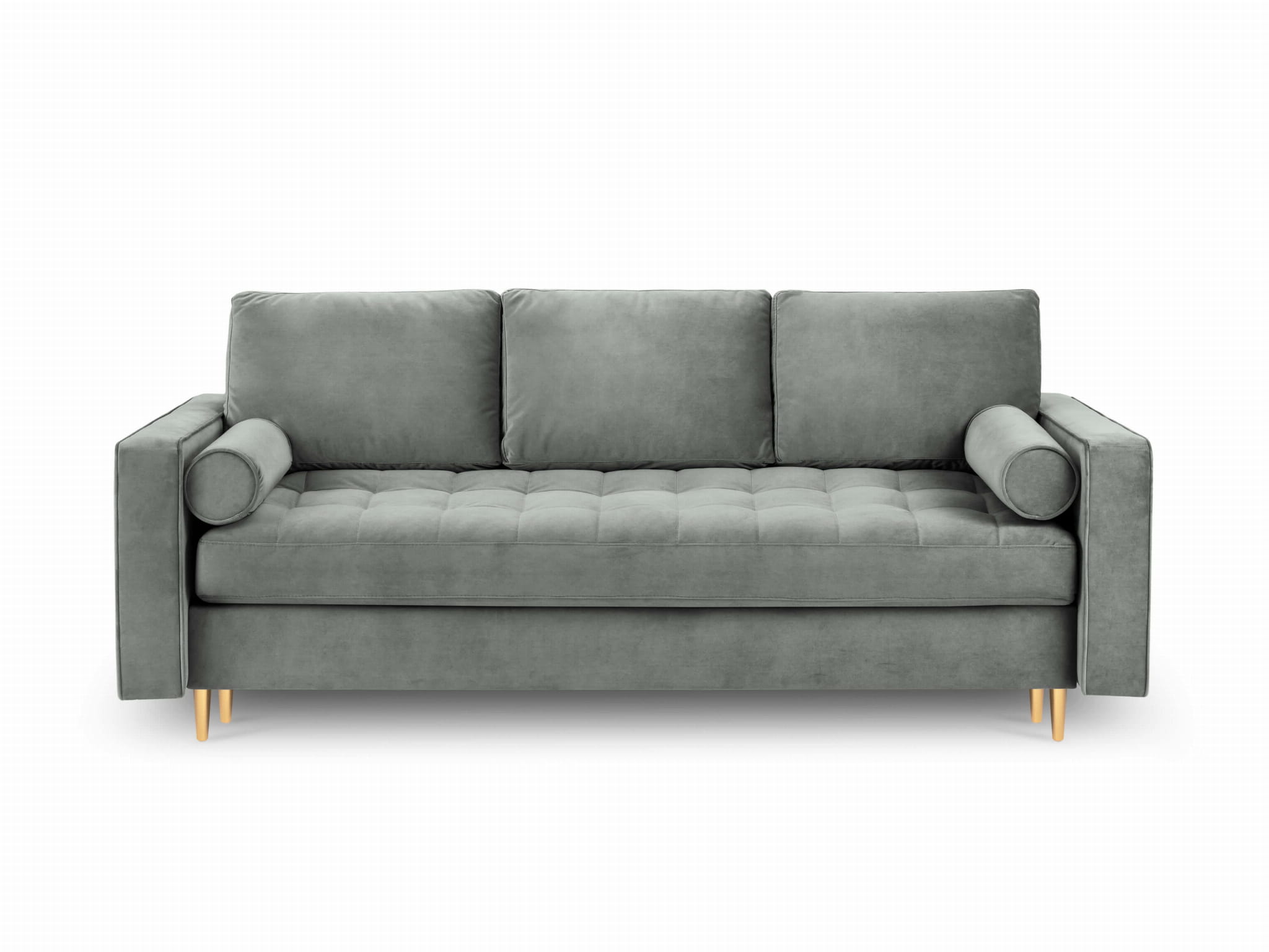 Rozkładana sofa 3 osobowa pikowana Santo aksamit szara na złotych nóżkach