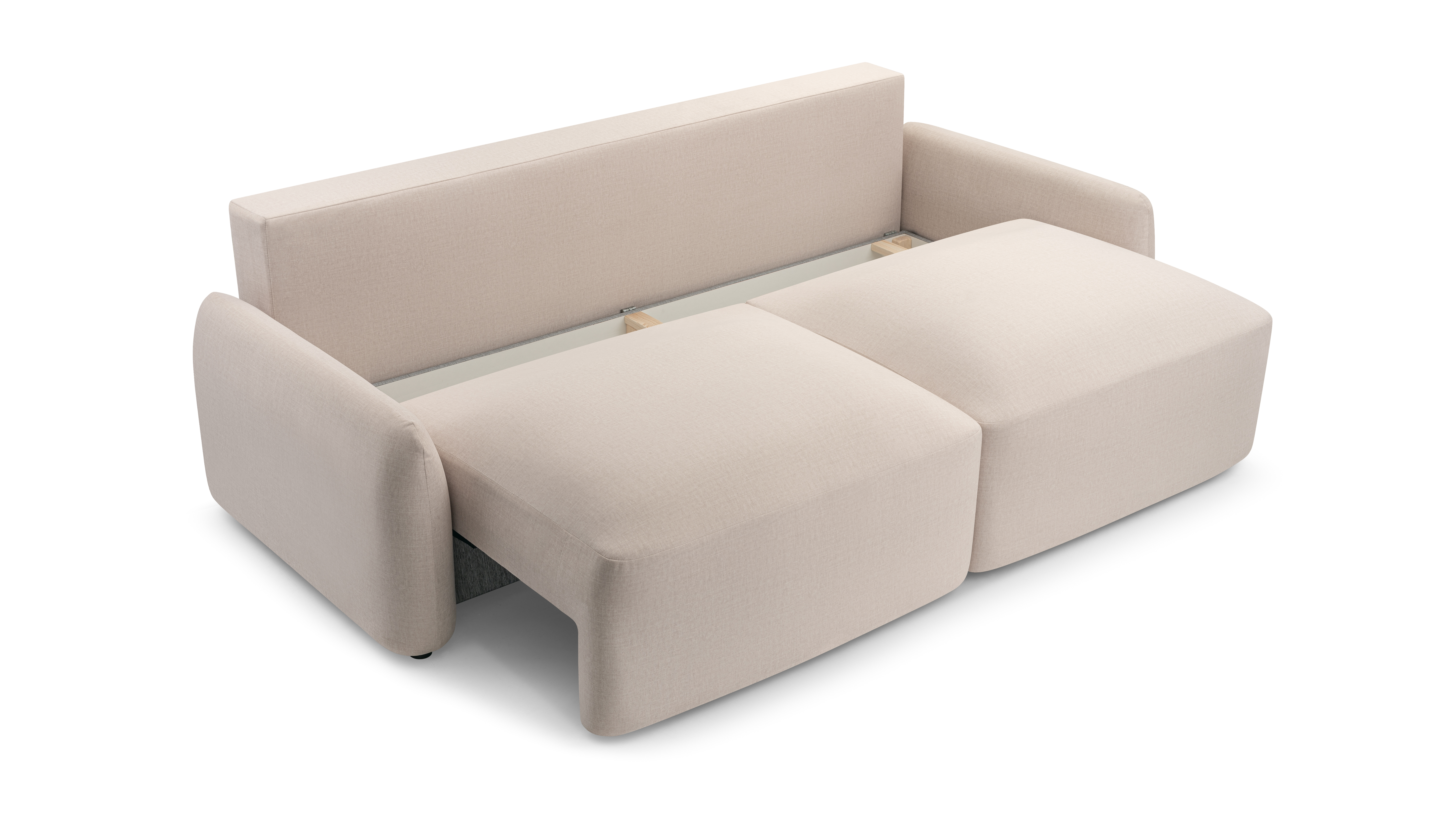 Move It All to sofa, która zachwyca nie tylko formą – dzięki intuicyjnemu systemowi rozkładania błyskawicznie zmienia się w wygodne łóżko o powierzchni spania 155 x 200 cm, a praktyczny pojemnik na pościel zapewnia dodatkowe miejsce do przechowywania. Mimo pełnej funkcji spania, mebel zachowuje eleganckie proporcje i lekkość linii. To idealne rozwiązanie do salonów, pokoi gościnnych czy sypialni, w których liczy się zarówno design, jak i wygoda.