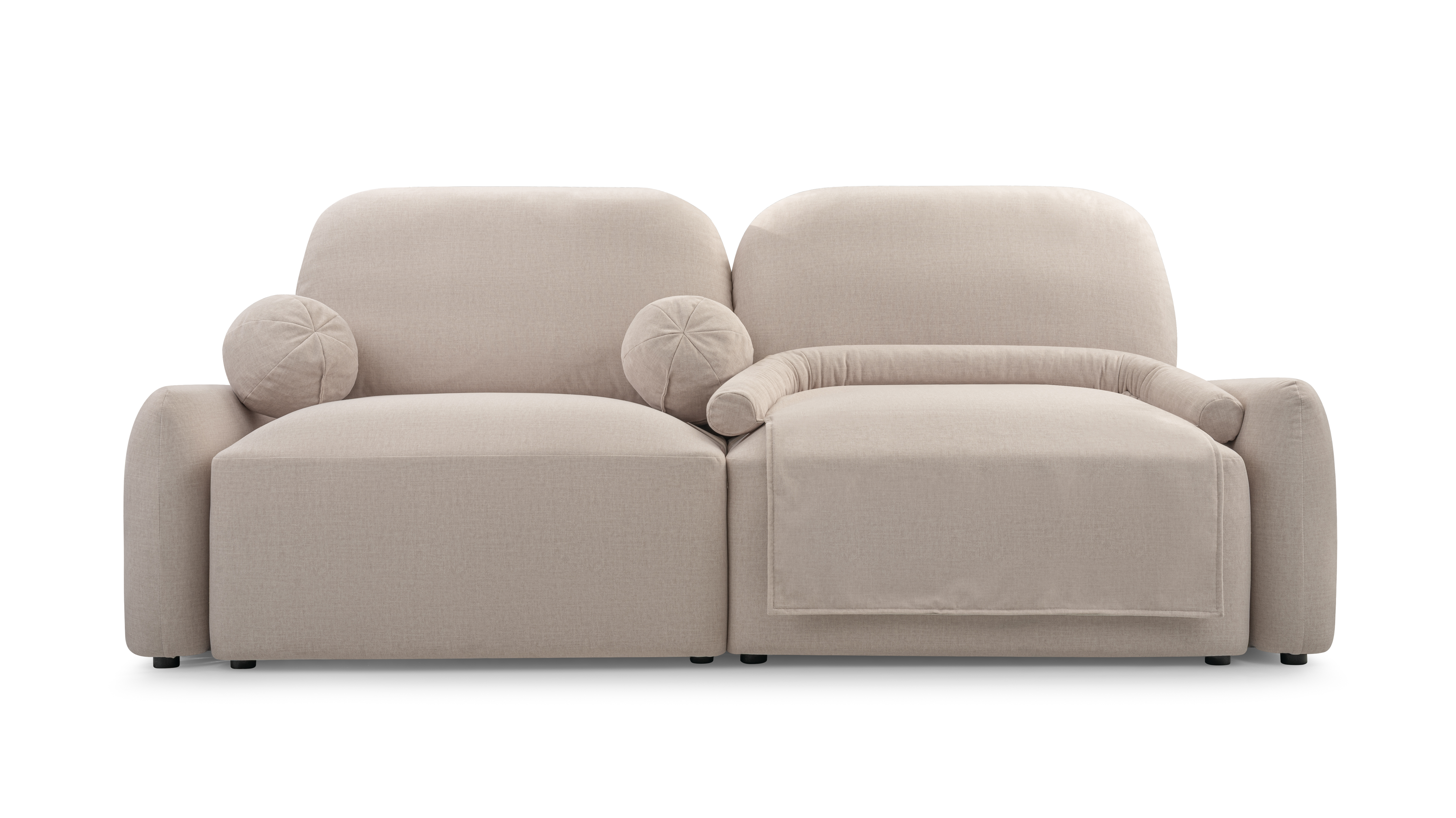 Sofa Move It All to najbardziej wyrafinowana forma w kolekcji DT Collection. Zaprojektowana z myślą o tych, którzy nie chcą wybierać między estetyką a funkcjonalnością – łączy subtelną elegancję z pełnym komfortem użytkowania. Jej zaokrąglona sylwetka, poduszki w kształcie miękkich kulek i delikatnie wyoblone krawędzie wprowadzają do wnętrza spokój i wizualną lekkość, charakterystyczną dla estetyki japandi soft.