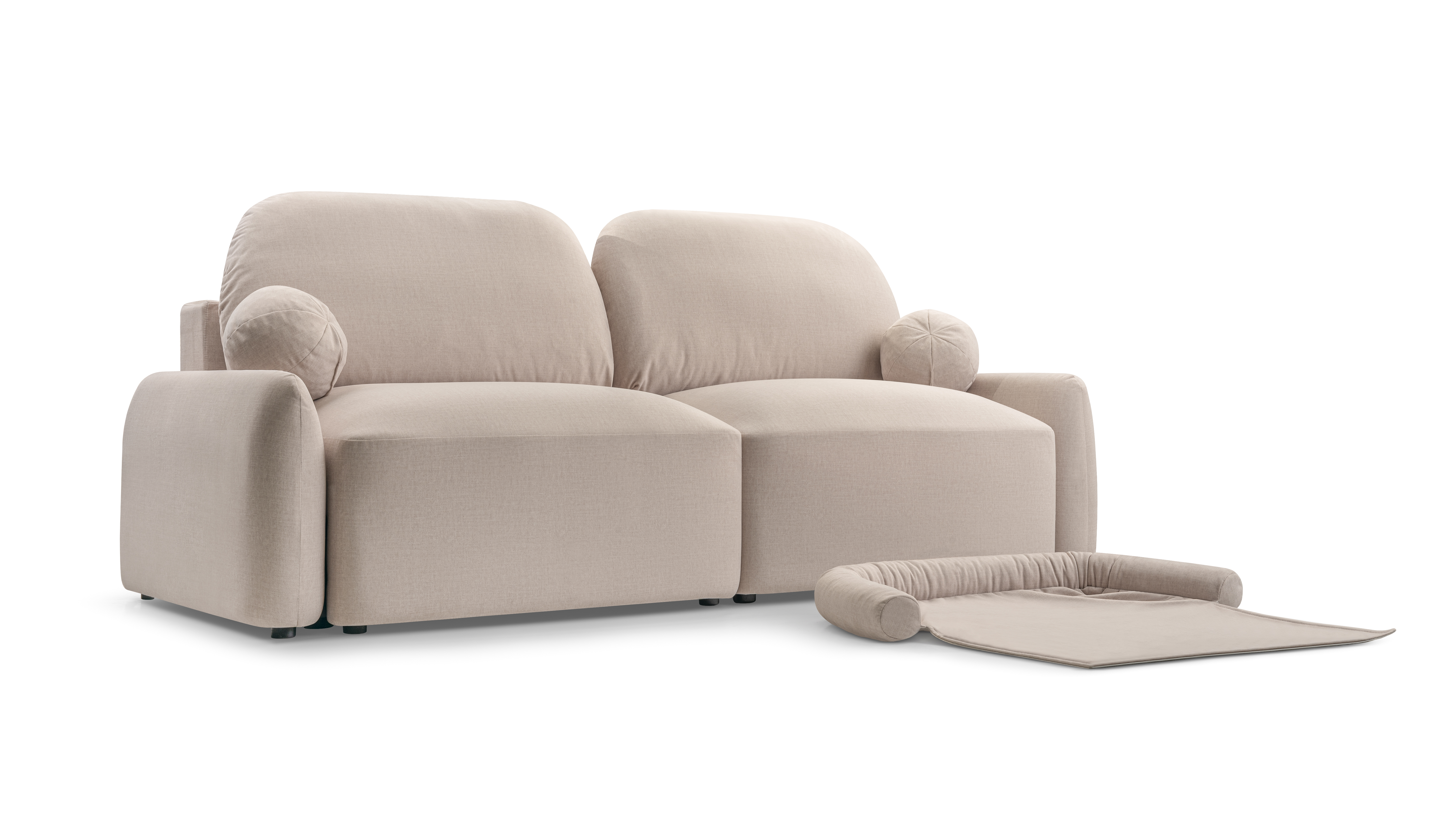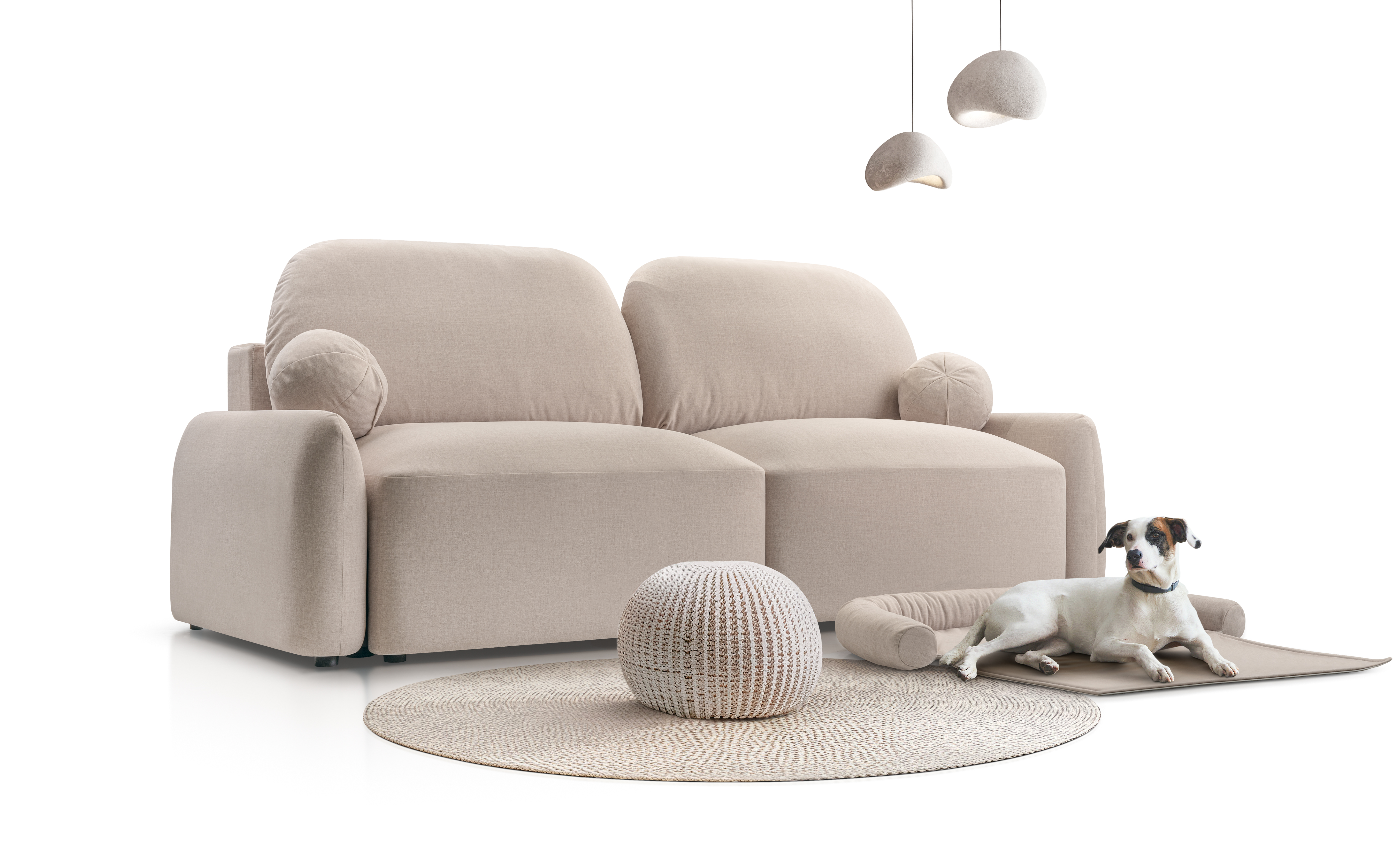 Dodatkowo Move It All to prawdziwa maksymalistka wśród sof pod względem posiadanych funkcji – jej projekt przewiduje nawet dedykowane legowisko dla Twojego pupila. Do zestawu dołączony jest specjalny wałek oraz dopasowany pokrowiec, które możesz ułożyć na siedzisku, tworząc Twojemu czworonożnemu przyjacielowi osobną, wygodną strefę do odpoczynku. Dzięki temu zwierzak może relaksować się blisko Ciebie, w równie dobrym stylu, a jednocześnie nie pozostawia śladów na głównej tapicerce. Dodatkowy element można w każdej chwili zdjąć i wyprać, co sprawia, że sofa pozostaje praktyczna i zawsze wygląda jak nowa.