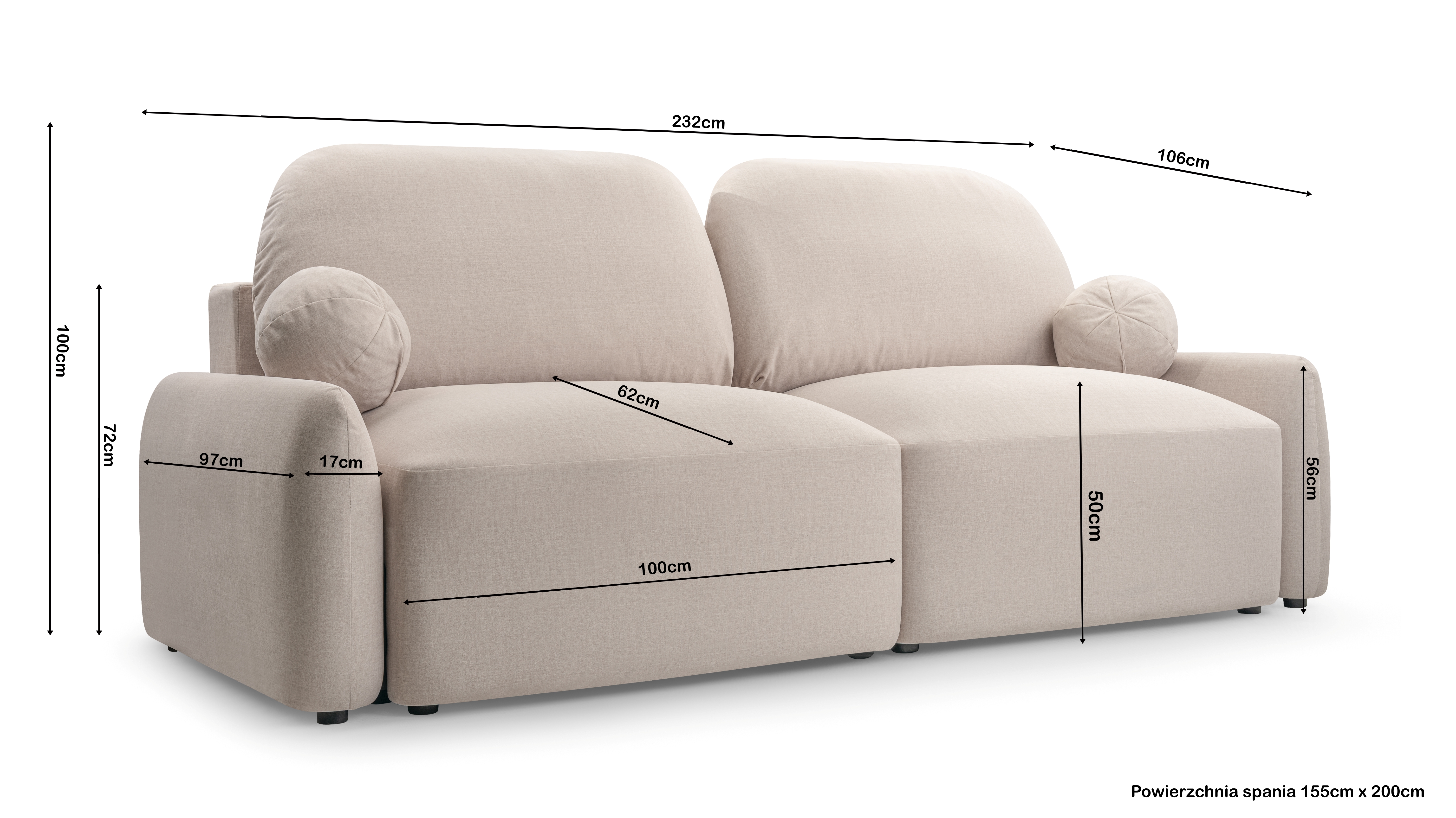 Powierzchnia do spania: 155 x 200 cm