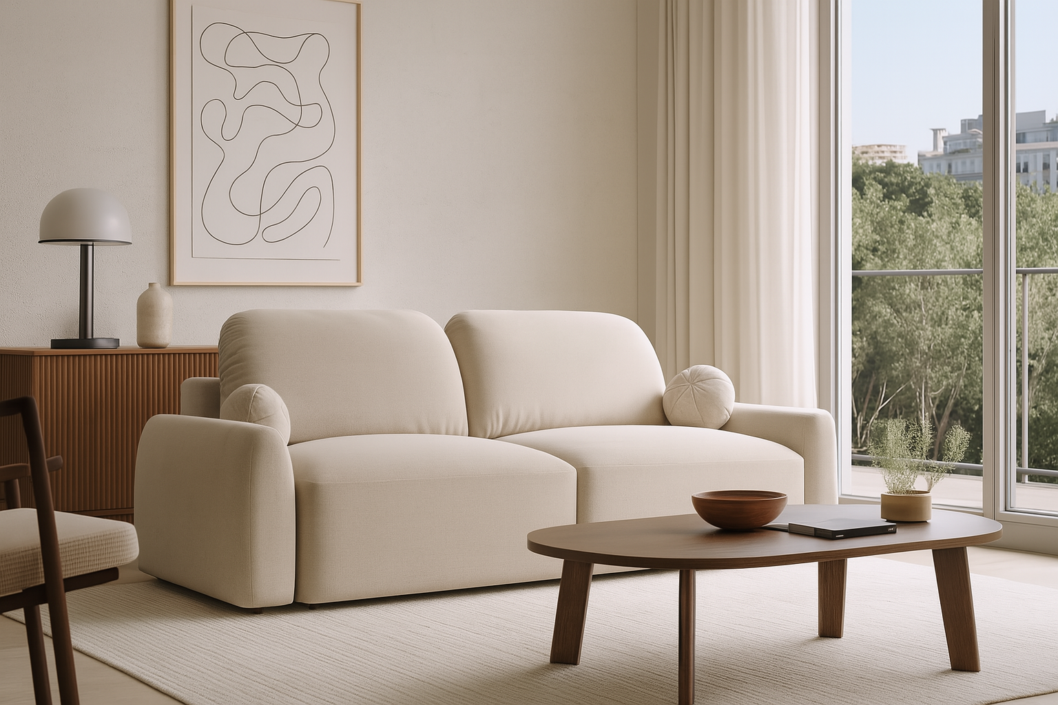 Move It All boucle to najbardziej wyrafinowany model z kolekcji DT Collection – sofa, która powstała z myślą o tych, którzy nie chcą wybierać między designem a praktycznością. Jej organiczna forma, opływowe kształty i subtelnie zaokrąglone linie wprowadzają do wnętrza atmosferę spokoju i dyskretnego luksusu. To propozycja dla miłośników wysmakowanego minimalizmu w stylu japandi soft – harmonijnego połączenia japońskiej prostoty i skandynawskiej przytulności.