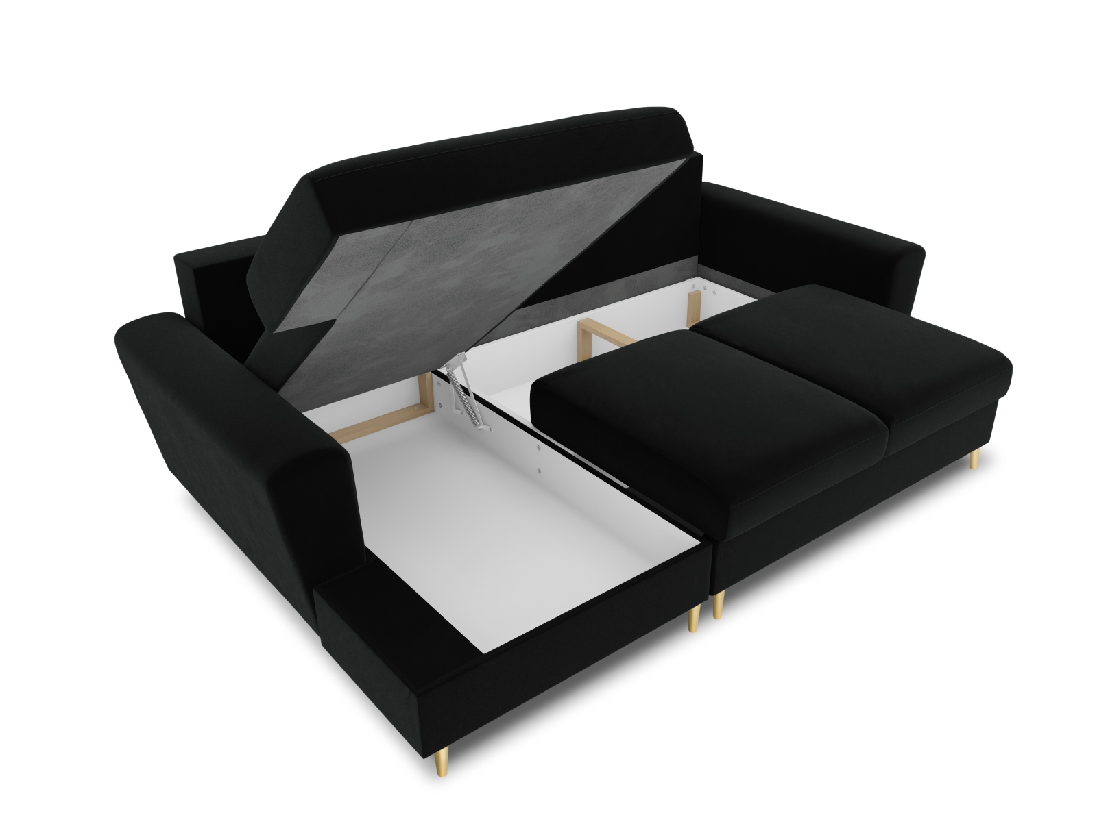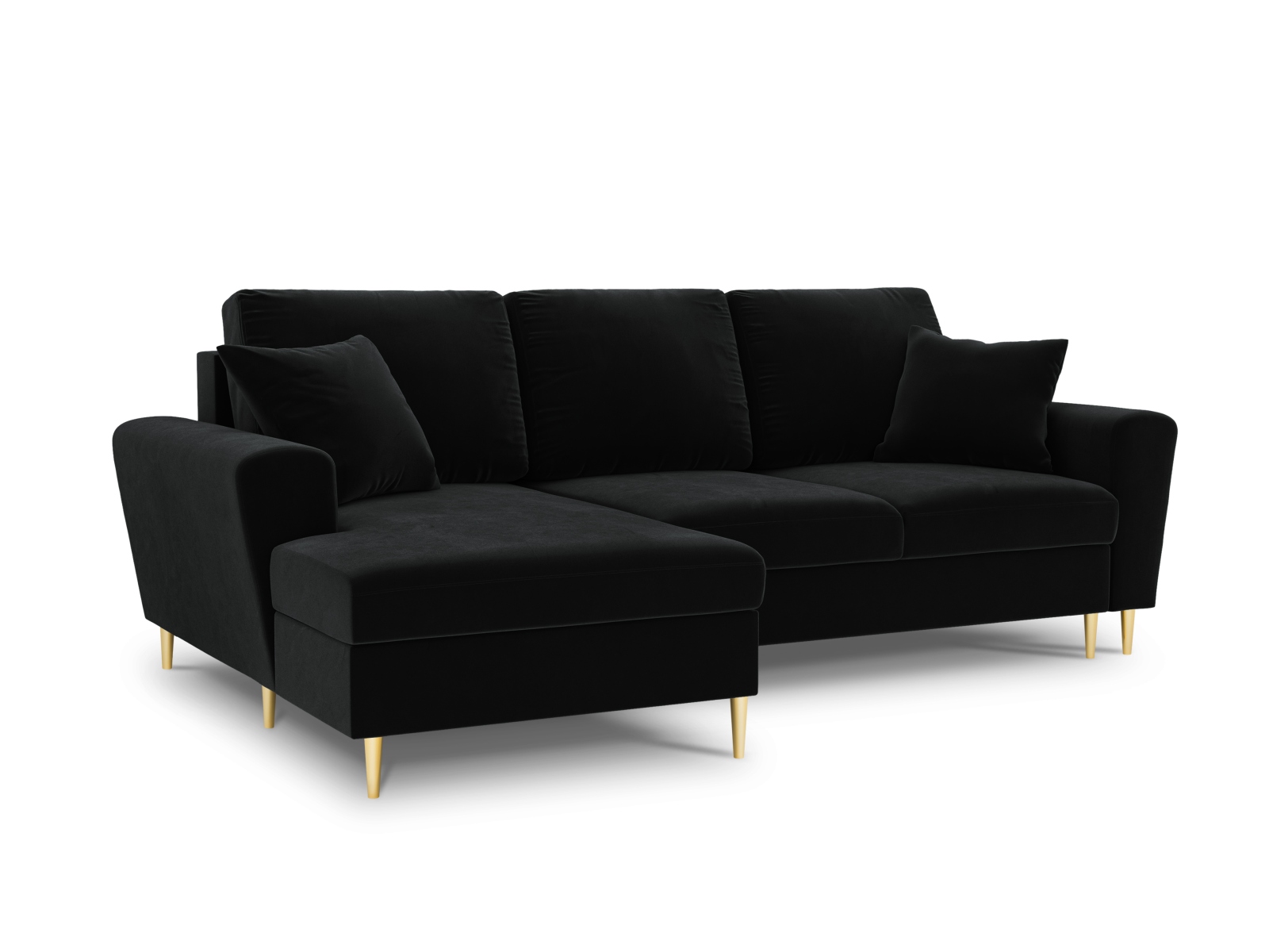 Rozkładana narożna sofa Kyoto czarna / złote nóżki