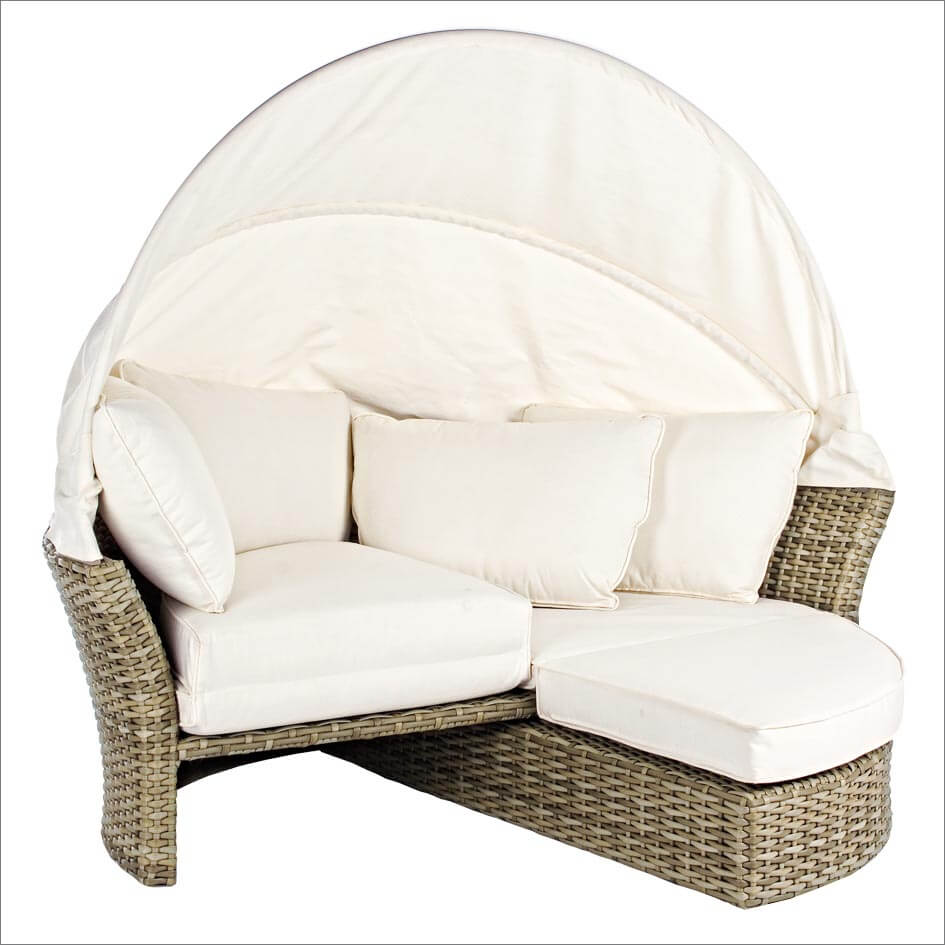 Rozkładane łóżko z baldachimem sprawi, że poczujesz się we własnym ogrodzie niczym na rajskiej wyspie. Luksusowy mebel ogrodowy projektu włoskiej marki Bizzotto zagwarantuje Ci przytulny wypoczynek na świeżym powietrzu.