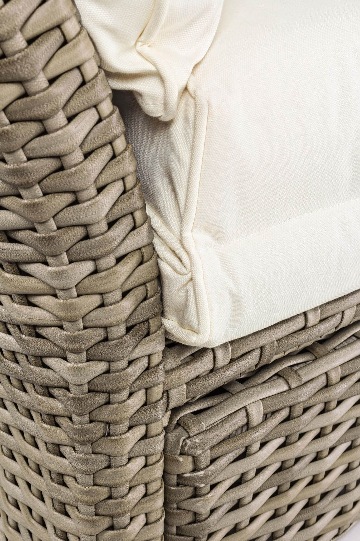 Jasne łóżko ogrodowe wykonane jest z materiałów odpornych na warunki atmosferyczne, przez co idealnie sprawdzi się w przestrzeni outdoorowej.