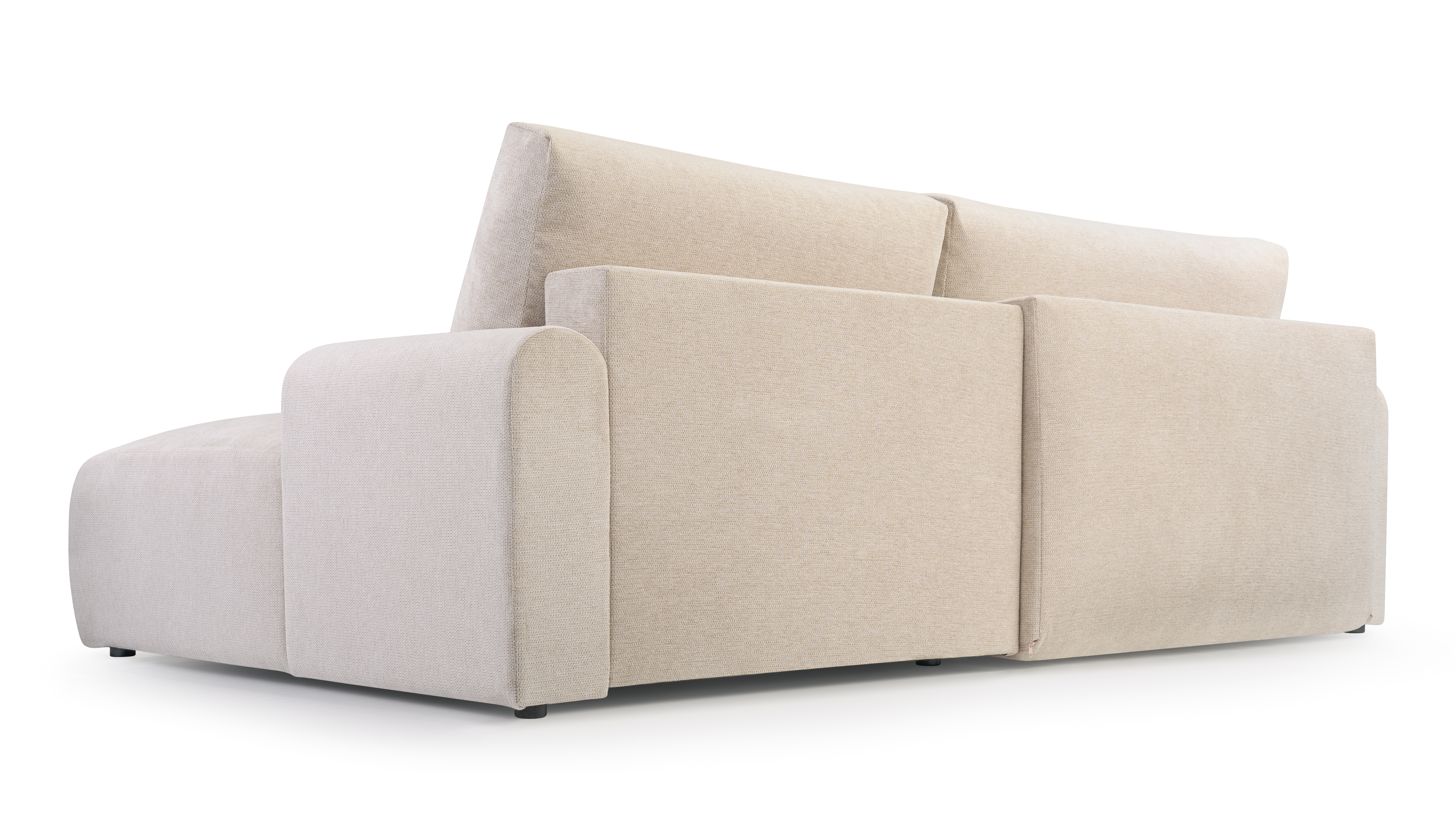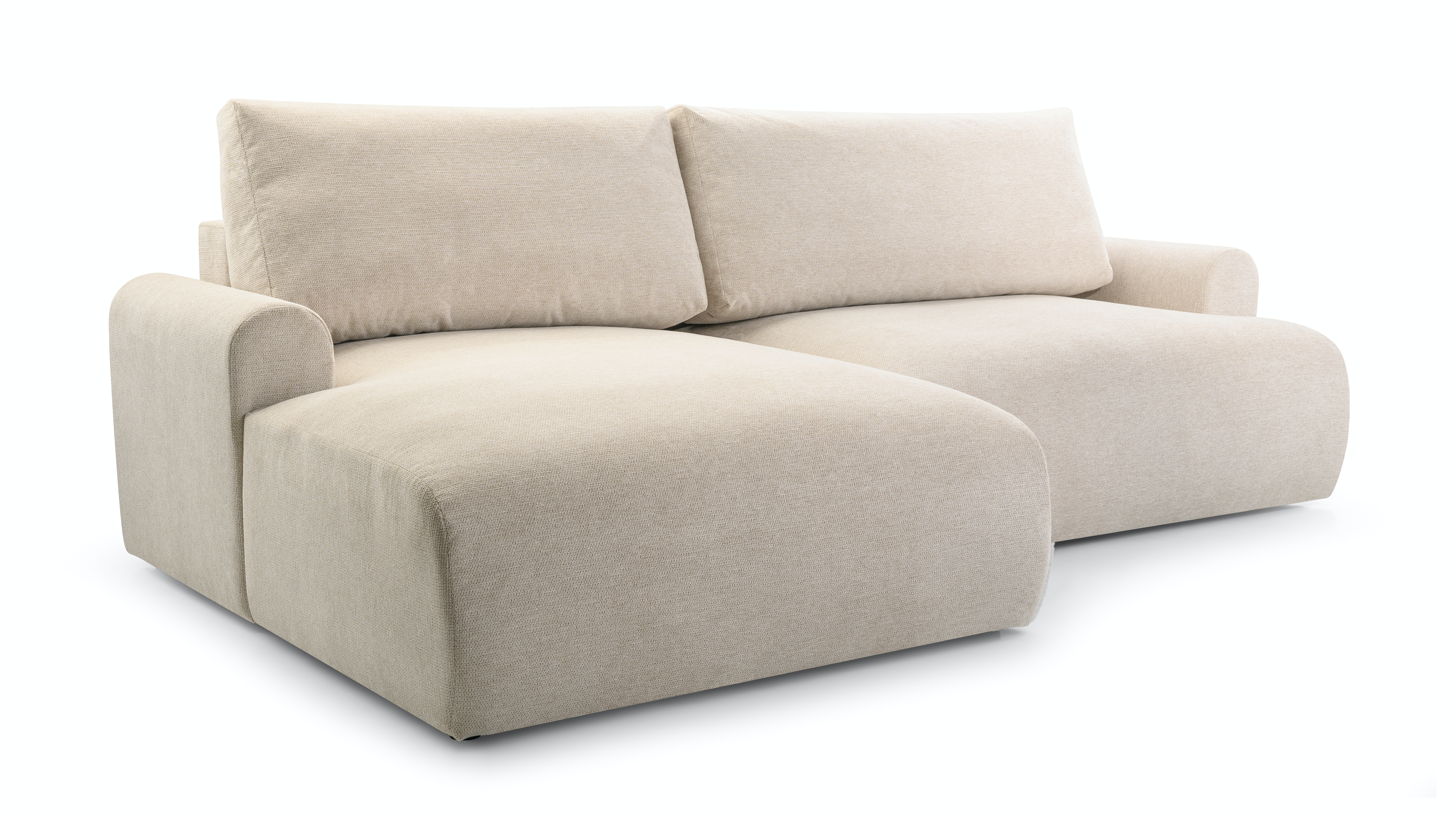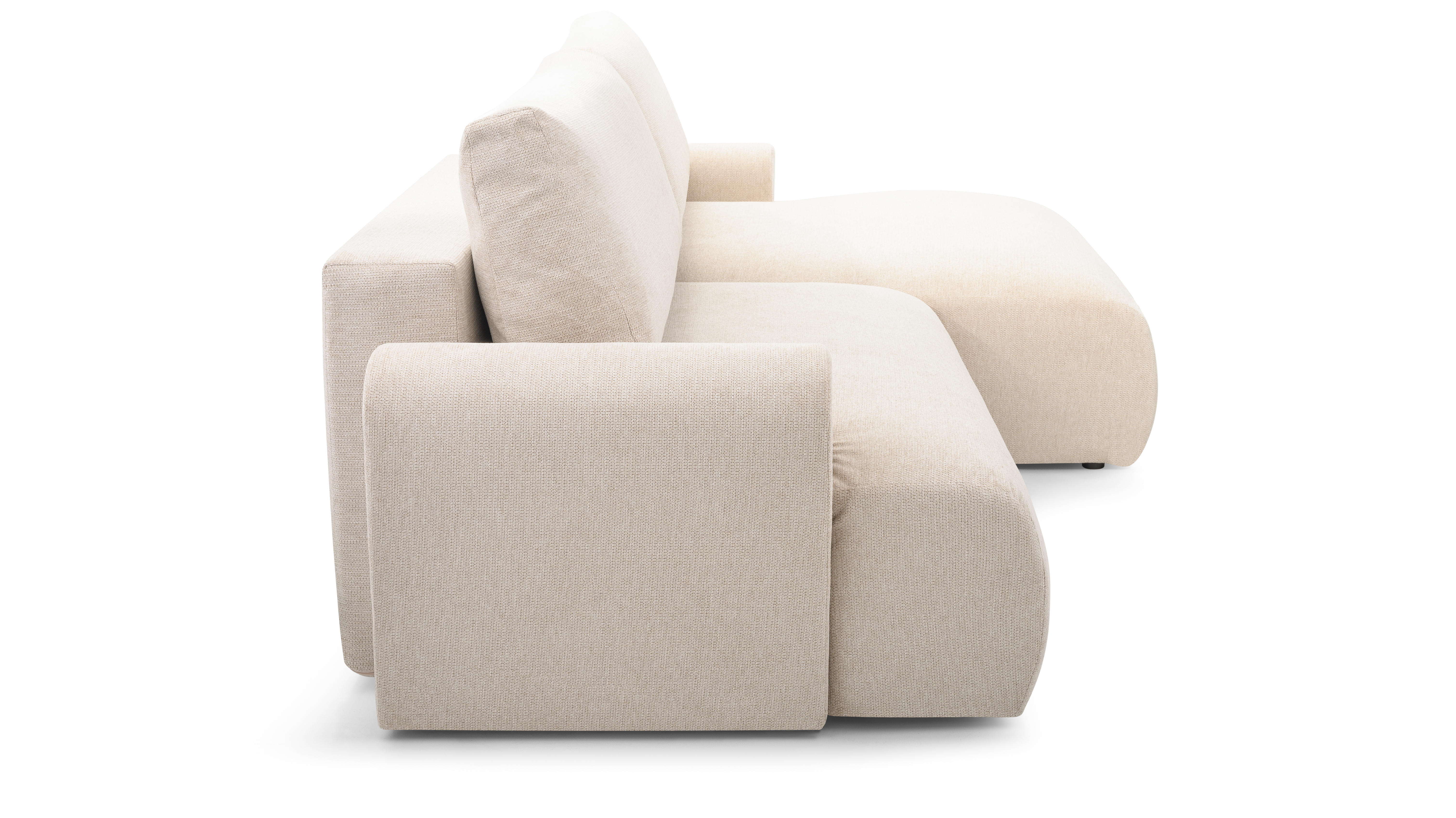 Move Minimalist to rozkładany narożnik, który łączy nowoczesną estetykę z maksymalną funkcjonalnością. Zaokrąglone formy, szerokie siedziska i subtelna linia sprawiają, że mebel prezentuje się lekko i nowocześnie, jednocześnie oferując wyjątkowy komfort na co dzień. Wbudowana funkcja spania pozwala w kilka sekund rozłożyć narożnik do wygodnego łóżka o powierzchni 220 × 133 cm – idealnego na drzemkę, relaks po pracy lub dla niespodziewanych gości.