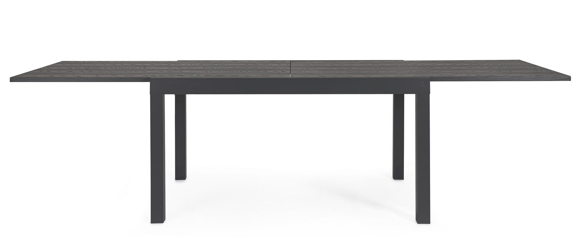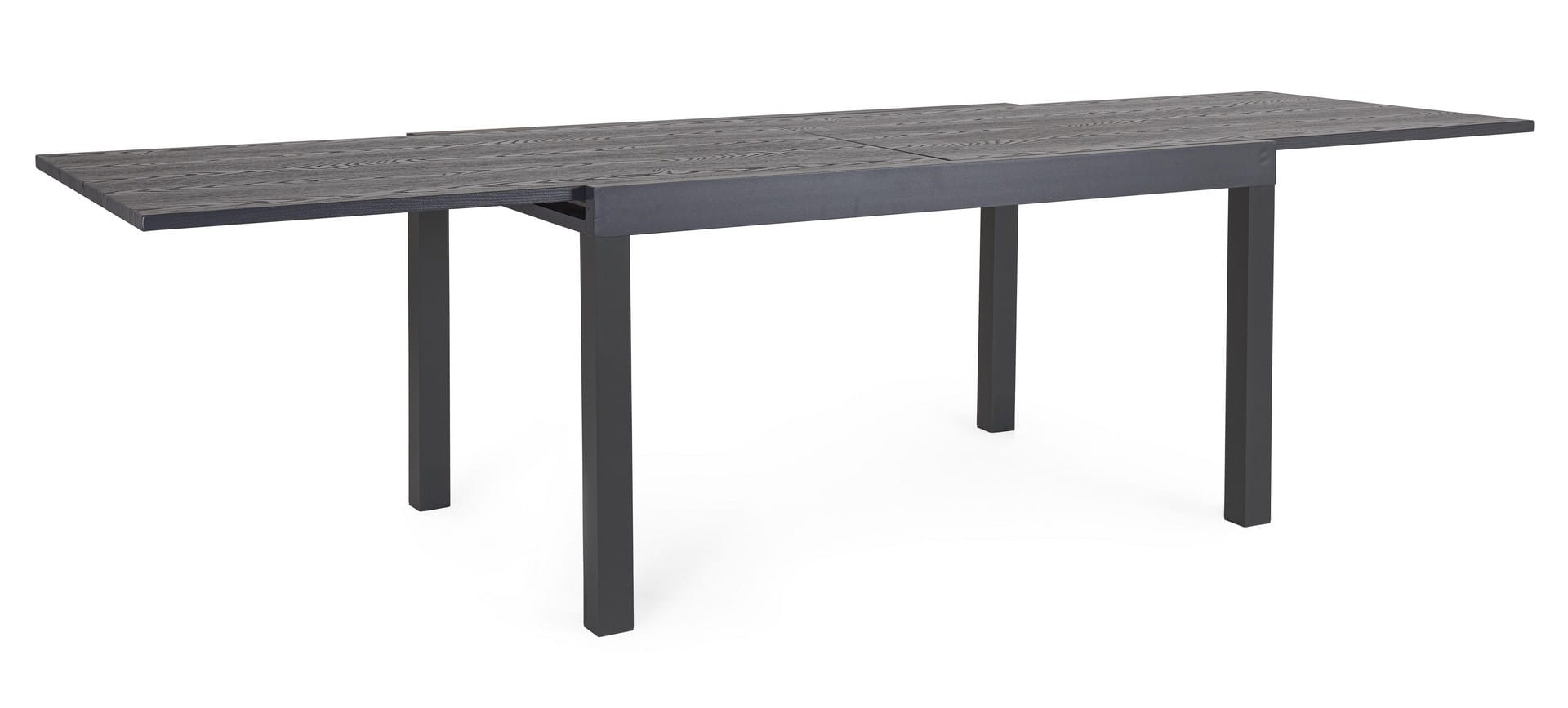 Solidna aluminiowa rama malowana proszkowo zapewnia trwałość i odporność na warunki atmosferyczne, a blat z efektem drewna łączy nowoczesny styl z naturalnym wykończeniem.