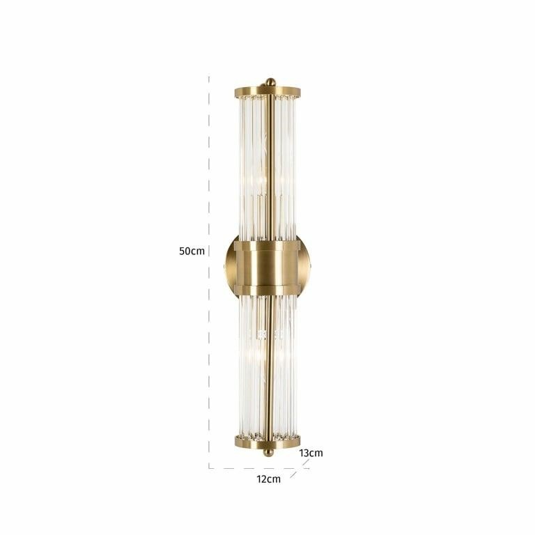 RICHMOND Lyan Brushed Gold to kinkiet, który łączy szlachetny minimalizm z ponadczasową elegancją. Jego smukła, cylindryczna forma została zaprojektowana tak, by subtelnie przyciągać uwagę, nie dominując przestrzeni. Wykonany z metalu w wykończeniu szczotkowanego złota oraz transparentnego szkła, tworzy harmonijne połączenie ciepła i przejrzystości, idealne dla wnętrz, w których liczy się detal i światło.