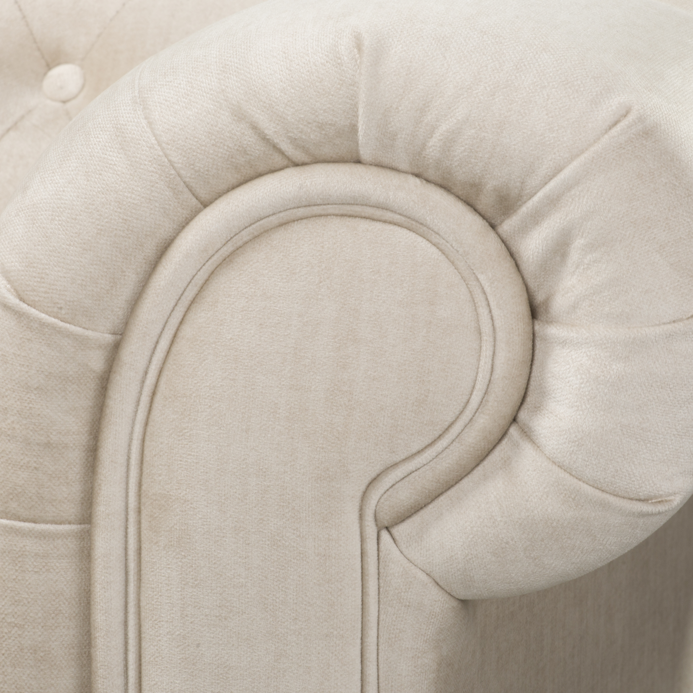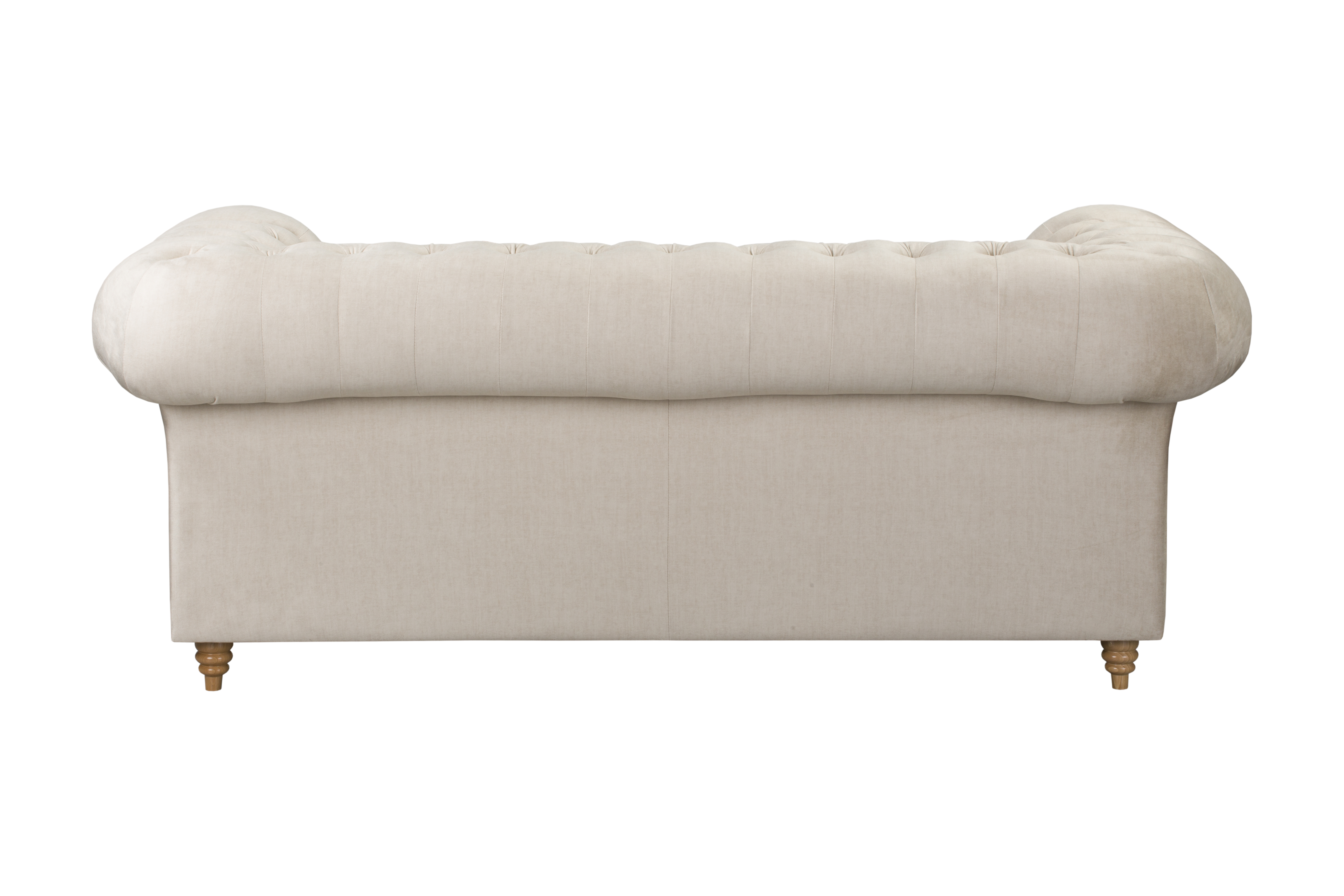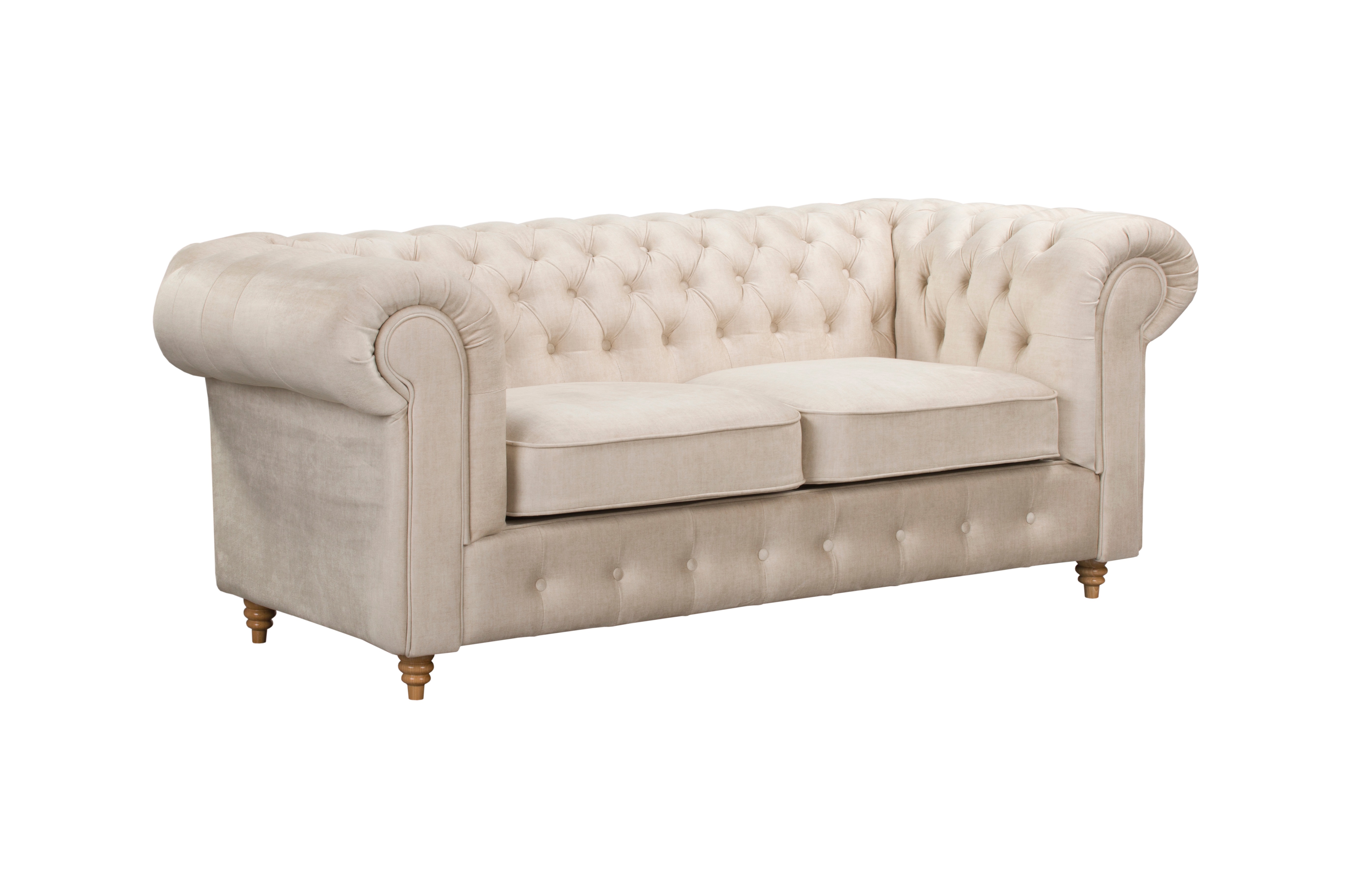 Sofa klasyczna Chesterfield Wellington to dwuosobowa kwintesencja elegancji, wzbogacona o praktyczną funkcję spania. Mebel tapicerowany jest tkaniną Vogue 01 w neutralnym, beżowym odcieniu, który doskonale podkreśla jego ponadczasowy design. Cechą charakterystyczną jest głębokie pikowanie na oparciu i podłokietnikach oraz masywne, toczone nogi.