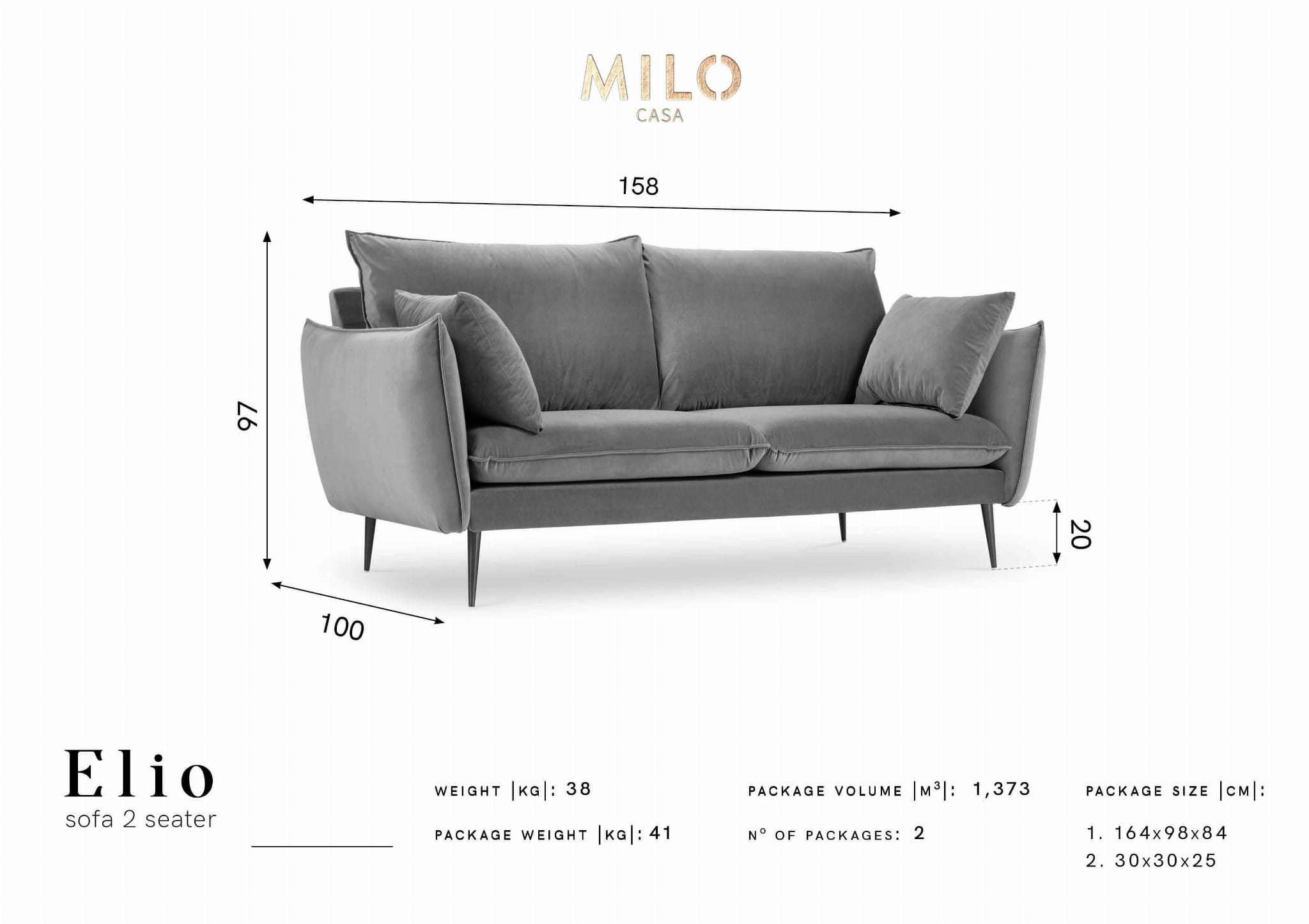 Dwuosobowa sofa Elio to mebel reprezentujący klasę i wysoki komfort wypoczynku. Oprócz cech użytkowych przejawia także walory estetyczne, za sprawą których Twoje wnętrze nabierze przytulnej elegancji.