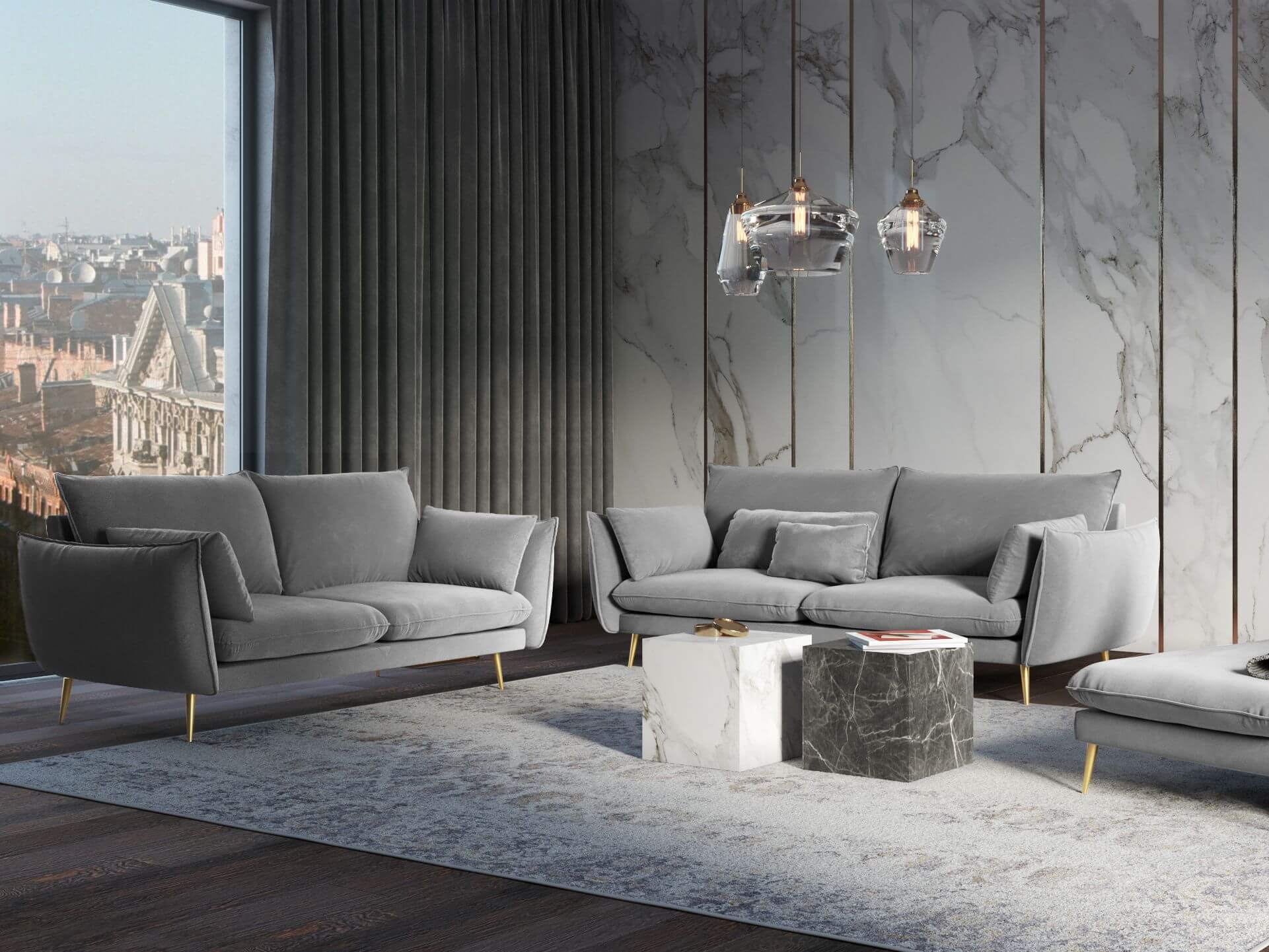 Sofa 2-osobowa Elio szary aksamit złote nóżki