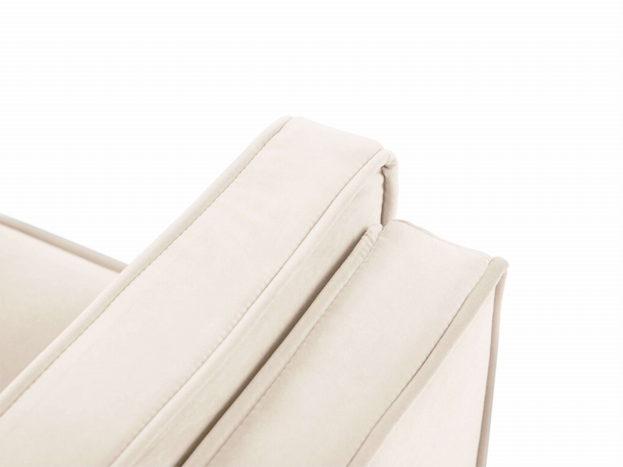 Dwuosobowa, beżowa sofa Luis tapicerowana jest syntetyczną tkaniną imitującą aksamit - Bluvel. Delikatny połysk materiału sprawia, że jest on dobrym wyborem do eleganckich projektów wnętrz. Bluvel posiada bardzo dobrą odporność na ścieranie - Test Martindale'a 50000, 320 g/m². Tkanina jest miękka i jedwabista w dotyku. Pomyślnie przeszła test papierosowy, co oznacza, że jest odporna na tlenie i zapłon płomienia oraz spełnia normę PN-EN 1021-1:2014-12.