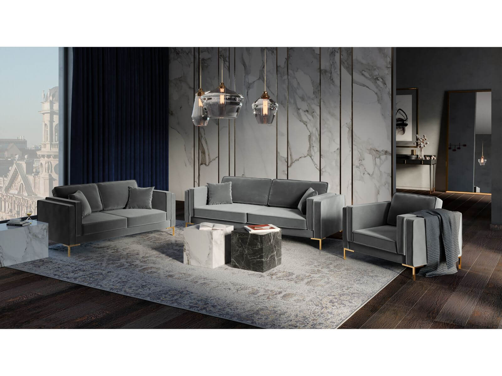 Sofa 2-osobowa Luis jasny szary aksamit na złotych nóżkach