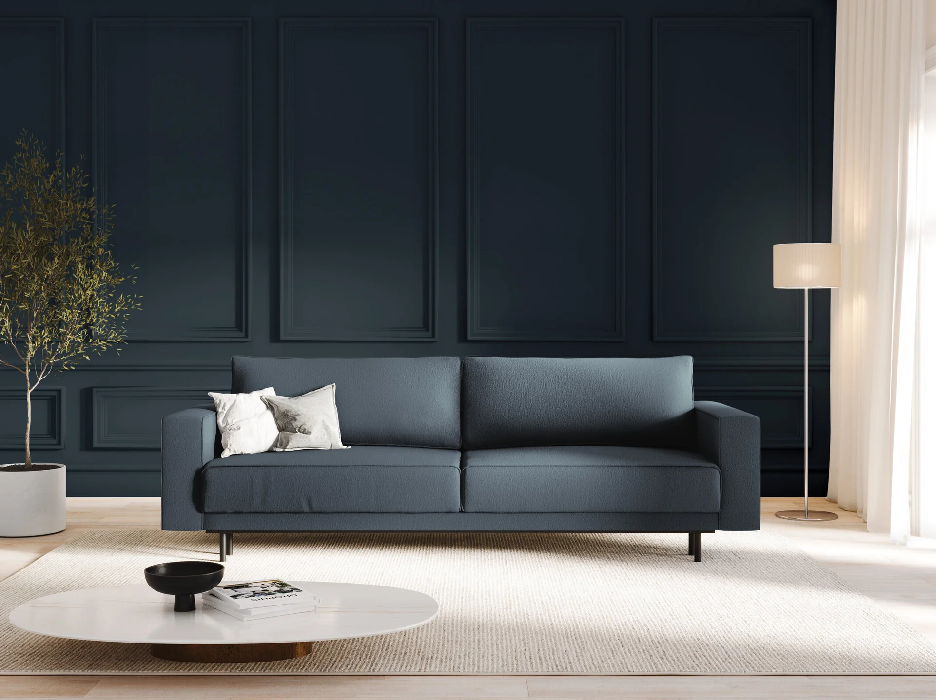 Sofa 3-osobowa Caro z funkcją spania strukturalna stalowy niebieski