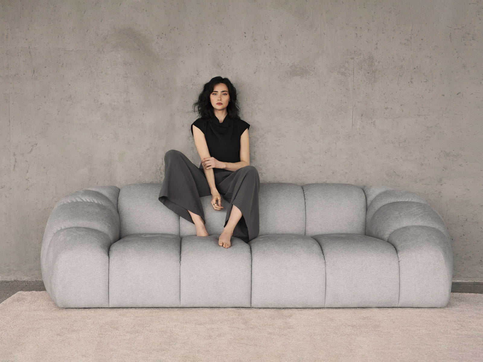 Sofa Diana to odważne połączenie elegancji, nowoczesności i innowacyjnego podejścia do komfortu. Jej rzeźbiarska forma i obfite, otulające kształty przyciągają wzrok, tworząc w salonie wyjątkową strefę relaksu. Dzięki opływowej linii, miękkim podłokietnikom i głębokim siedziskom, sofa zapewnia nieporównywalną wygodę, otulając ciało i dając poczucie całkowitego odprężenia.