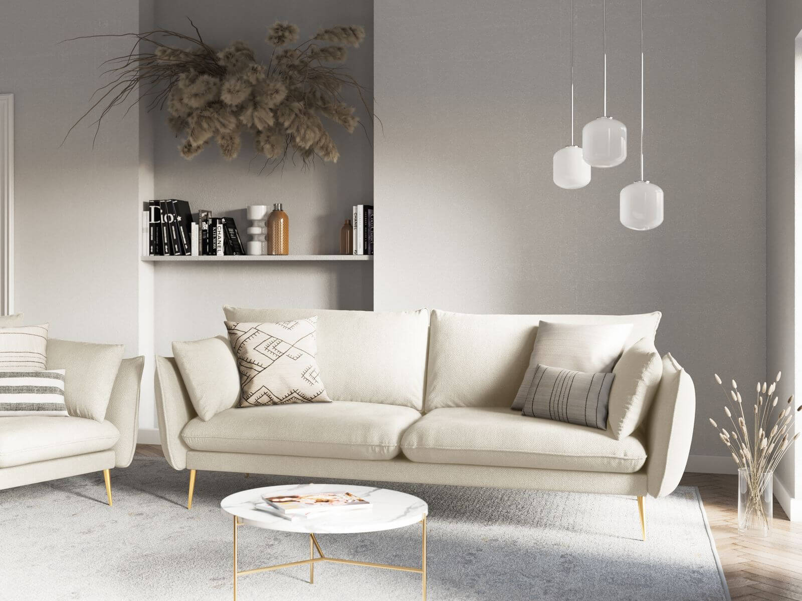 Sofa 3-osobowa Elio strukturalna tkanina jasny beż nóżki złote