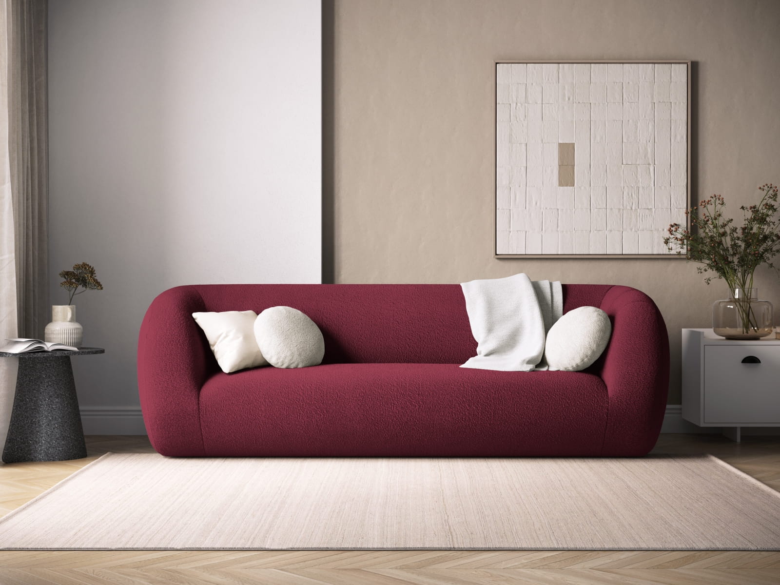 Sofa 3-osobowa Essen boucle bordowa