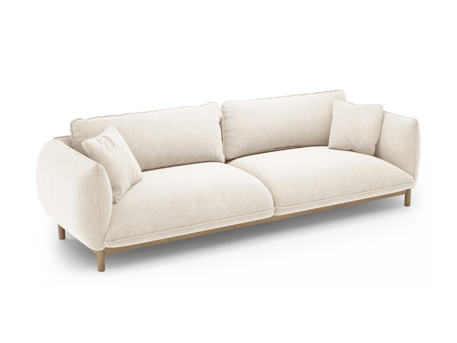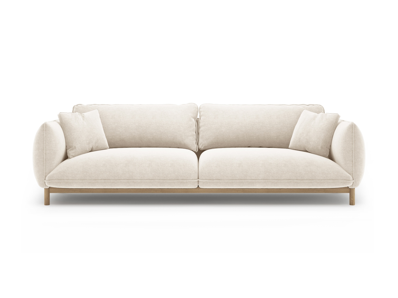 Czteroosobowa sofa Ada w odcieniu kości słoniowej to imponujący mebel, który staje się jasnym punktem każdego salonu. Przy długości blisko 250 cm sofa oferuje królewską przestrzeń do wypoczynku dla całej rodziny. Mimo swoich gabarytów, mebel zachowuje wizualną lekkość i elegancję – to zasługa jasnej tapicerki oraz charakterystycznej drewnianej podstawy, która unosi bryłę, wpisując ją w estetykę Japandi i modern classic.