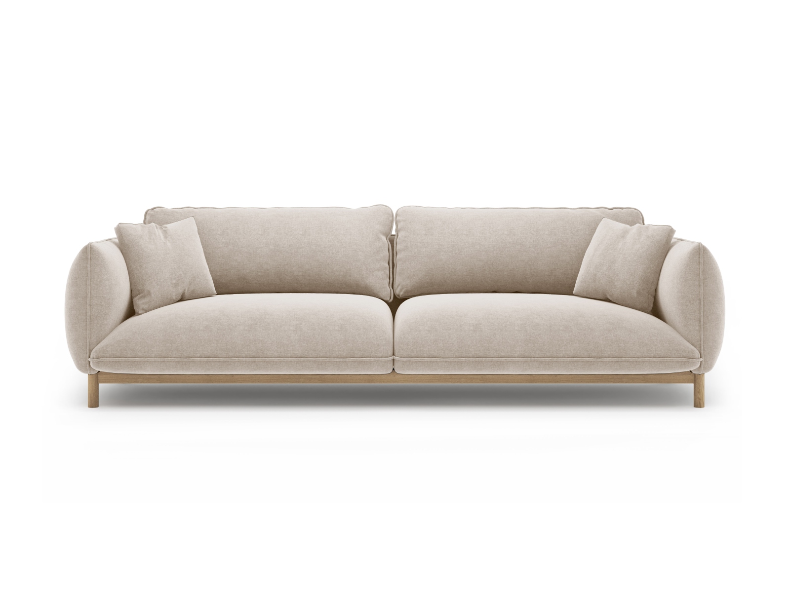 Czteroosobowa sofa Ada to majestatyczny mebel, który staje się sercem domowego ogniska. Przy długości blisko 250 cm oferuje luksusową przestrzeń wypoczynku dla całej rodziny. Mimo swoich rozmiarów, sofa nie przytłacza wnętrza – to zasługa charakterystycznej dla tej kolekcji drewnianej podstawy, która unosi bryłę i nadaje jej skandynawskiej lekkości. Jasny beż tapicerki wprowadza do salonu światło, spokój i harmonię, idealnie wpisując się w trendy Japandi oraz boho.