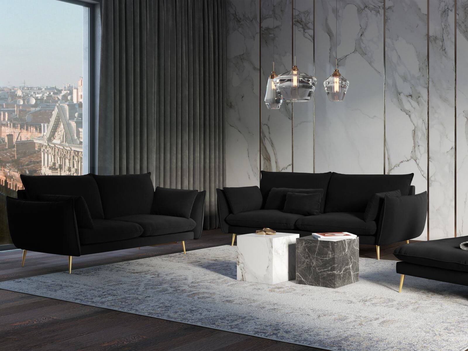 Sofa 4-osobowa Elio czarny aksamit nóżki glamour