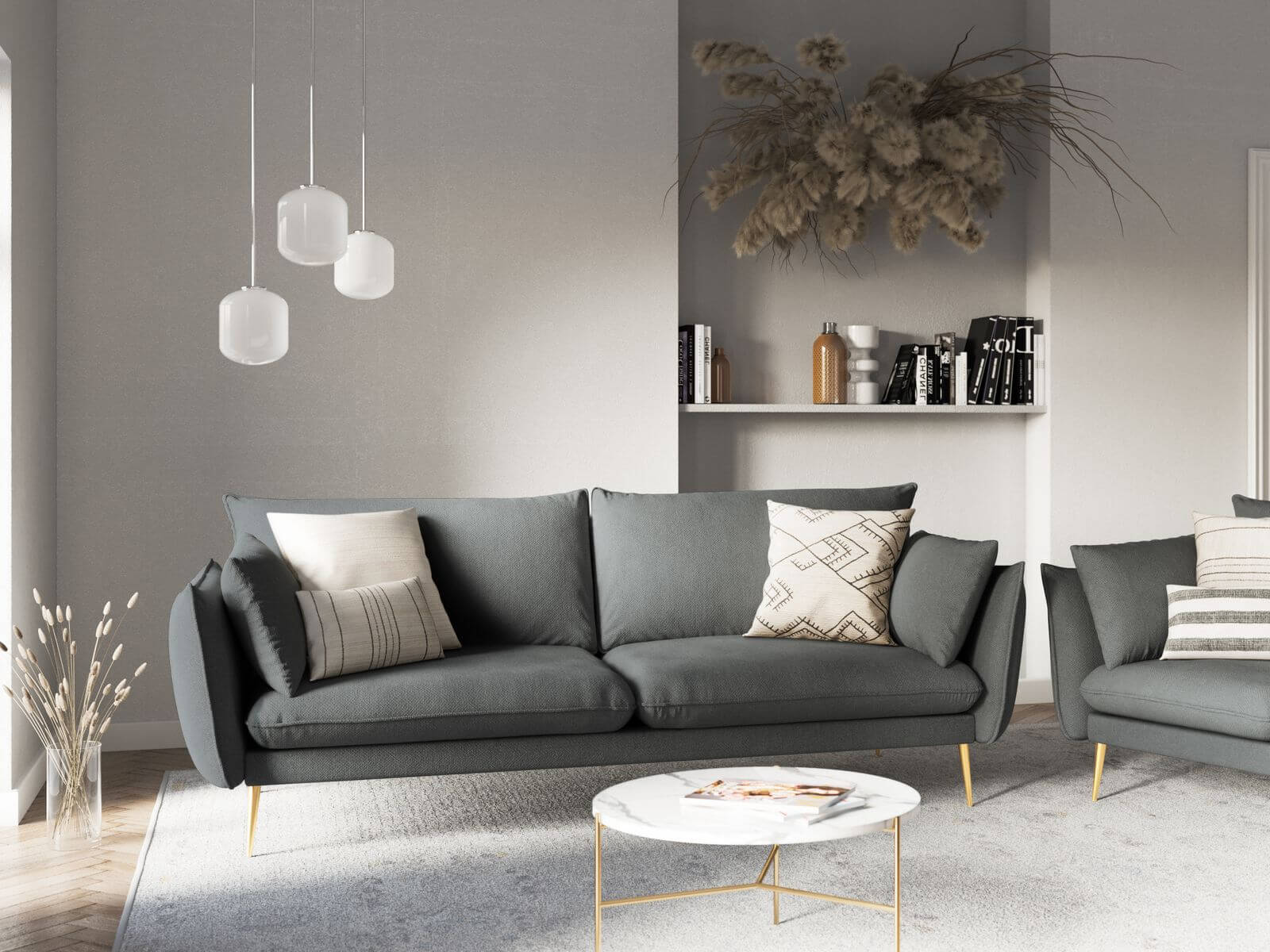 Sofa 4-osobowa Elio strukturalna tkanina ciemny szary nóżki złote