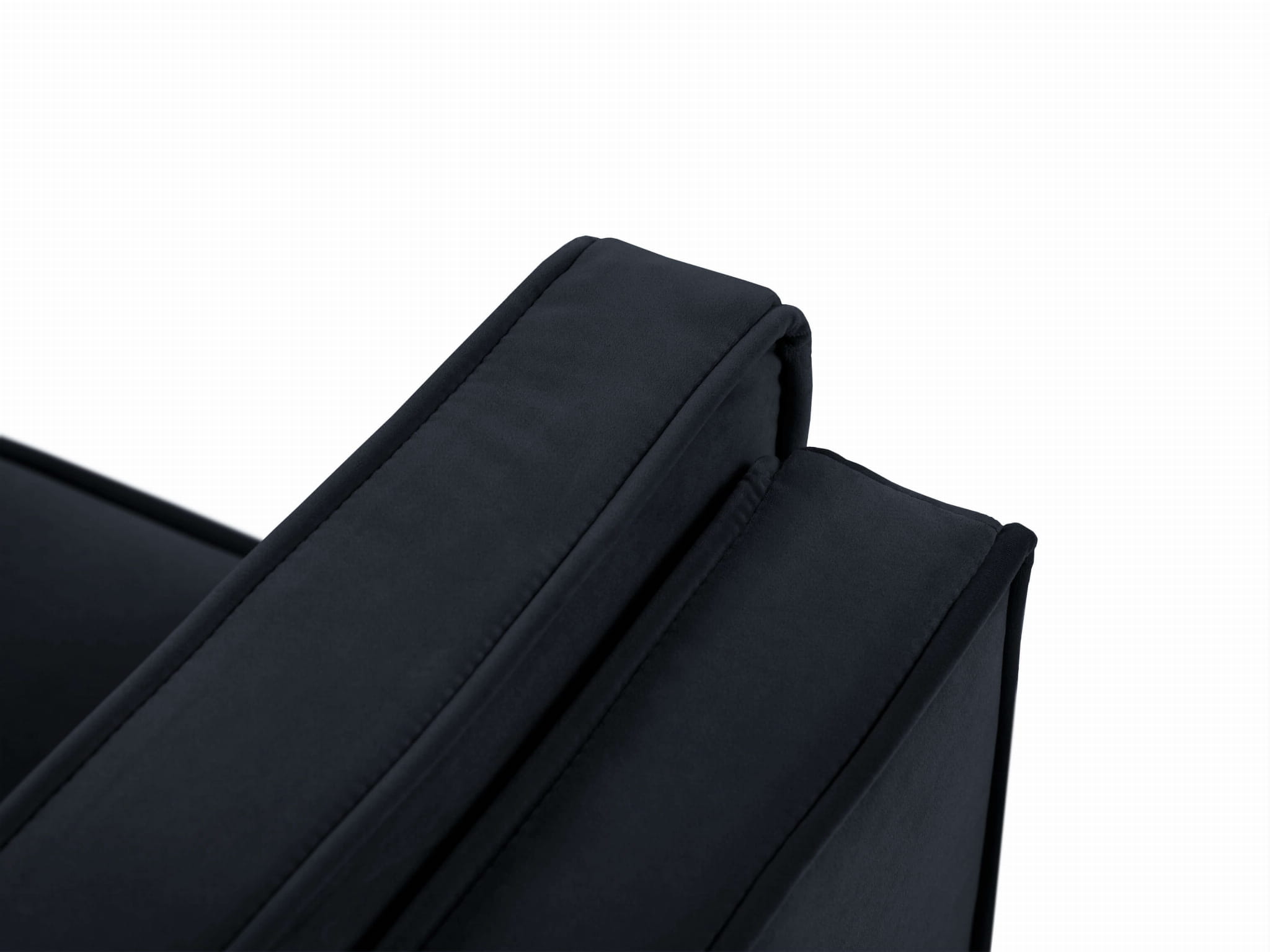 Czteroosobowa, granatowa sofa Luis tapicerowana jest syntetyczną tkaniną imitującą aksamit - Bluvel. Delikatny połysk materiału sprawia, że jest on dobrym wyborem do eleganckich projektów wnętrz. Bluvel posiada bardzo dobrą odporność na ścieranie - Test Martindale'a 50000, 320 g/m². Tkanina jest miękka i jedwabista w dotyku. Pomyślnie przeszła test papierosowy, co oznacza, że jest odporna na tlenie i zapłon płomienia oraz spełnia normę PN-EN 1021-1:2014-12.