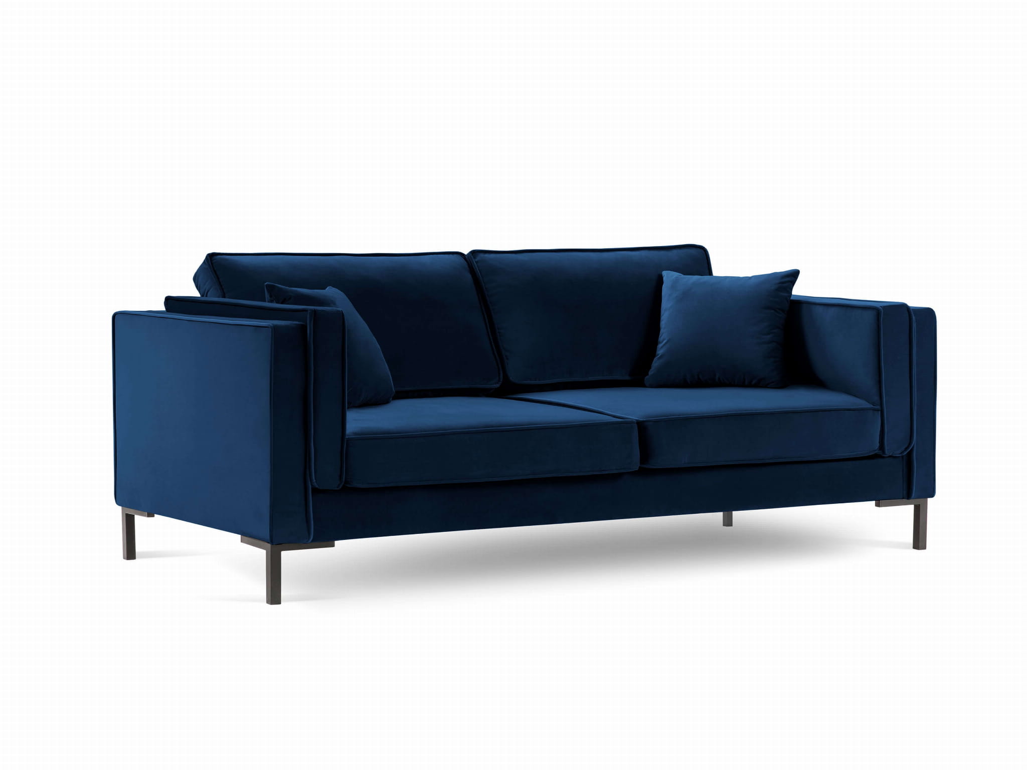 Sofa 4-osobowa Luis ciemno niebieski aksamit na czarnych nóżkach