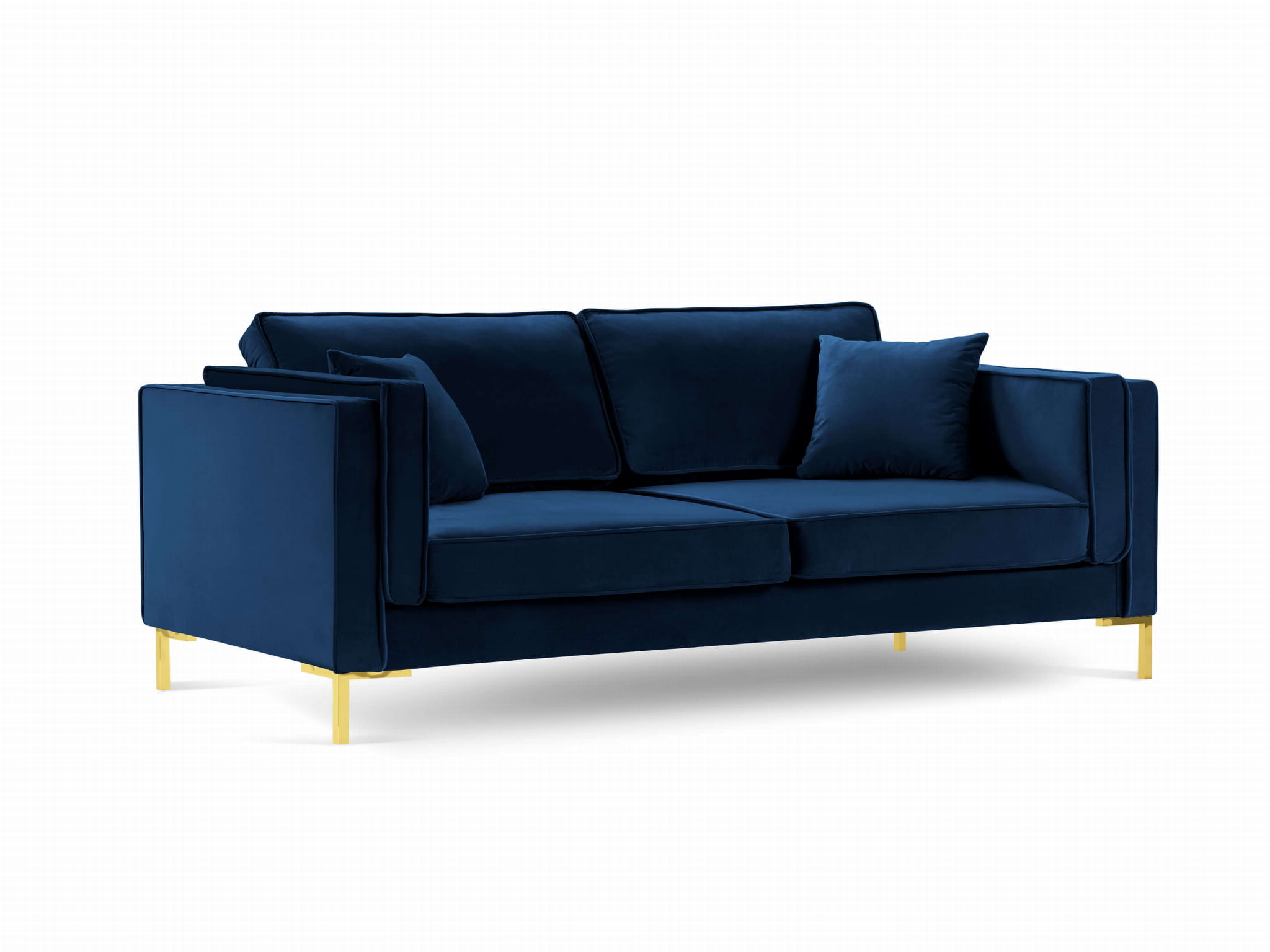 Sofa 4-osobowa Luis ciemno niebieski aksamit na złotych nóżkach