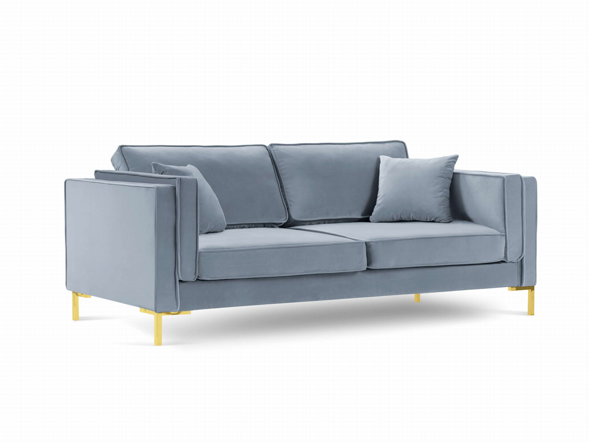 Sofa 4-osobowa Luis jasno niebieski aksamit na złotych nóżkach